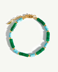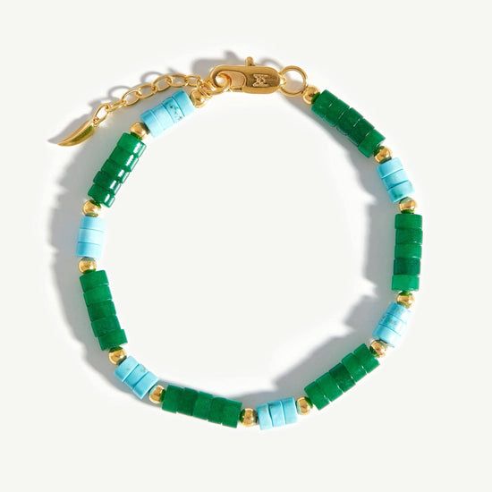 Missoma bracelets are crafted from high-quality materials, including sterling silver, 18k gold vermeil, and ethically sourced gemstones. Each product description provides detailed information about the materials used.