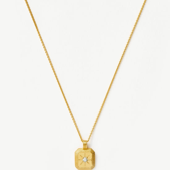Bring your birth month a whole new meaning with a personalized gemstone necklace. The ridged pendant, held on a short chain necklace, holds a natural healing crystal quartz stone and is embellished with a central star motif. The perfect gift for anyone born in April.