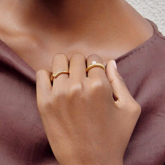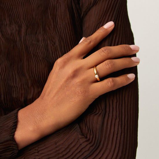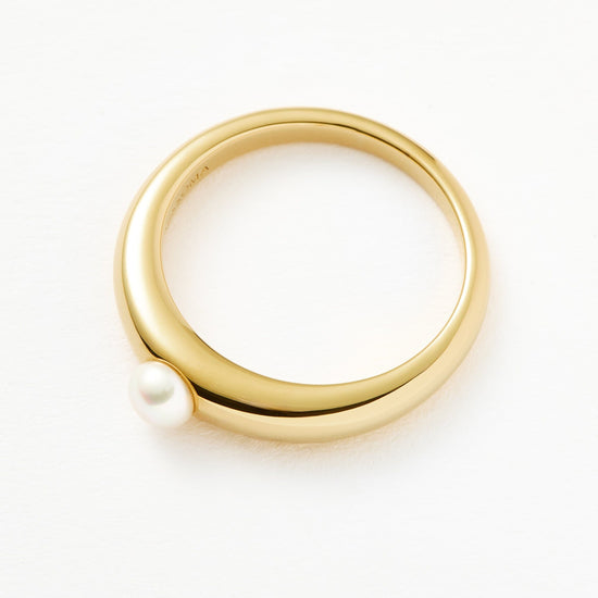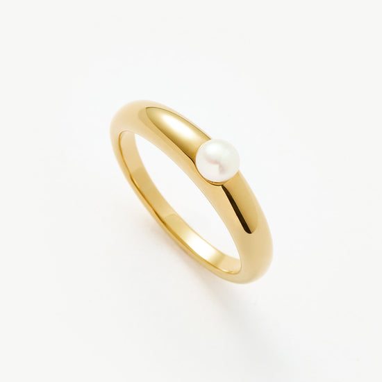 Pearls, reimagined. This everyday gold stacking ring features a central button pearl with a tapered design. Team with more stacking rings for an instant ring stack.