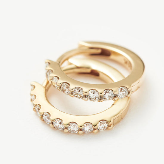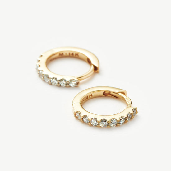 Everyday luxury, elevated. These refined huggies are set with round cut white diamonds and open with a hinge.
