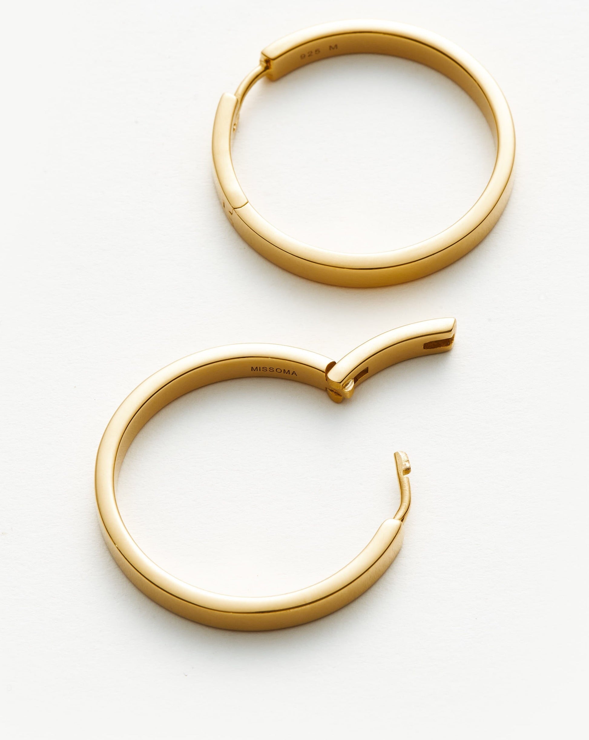 Introducing our lightest ever hoops — an elevated collection of everyday essentials that are anything but basic. An upgrade on a classic silhouette, these flat surfaced hoops have been handcrafted to become your new core staples. Plus, they feature a hidden hinge for a seamless closure. Wear solo or style with studs and mini hoops for an instant ear stack. Also available in small.