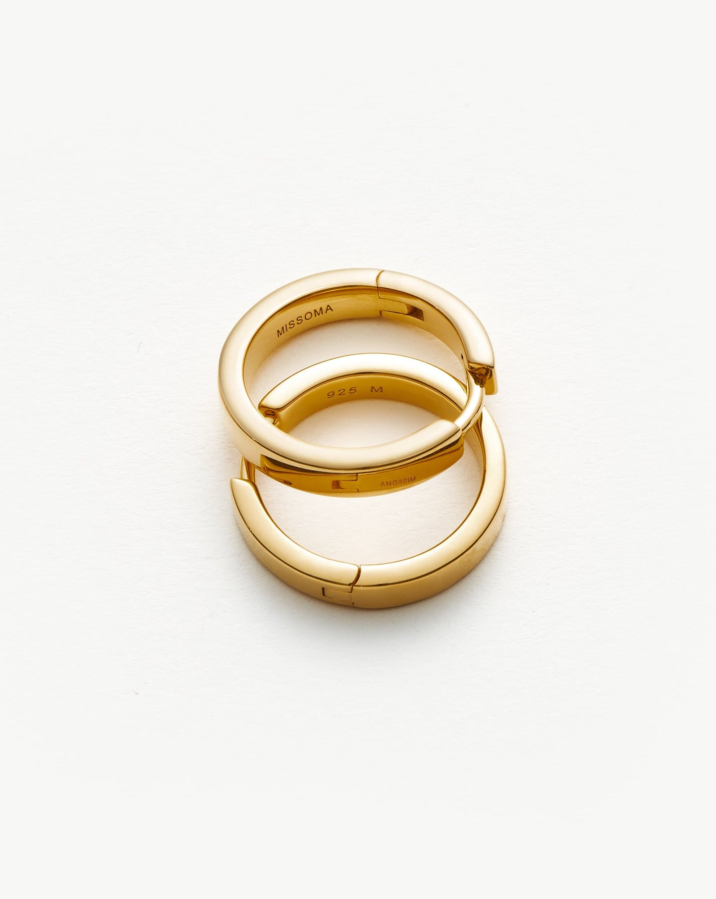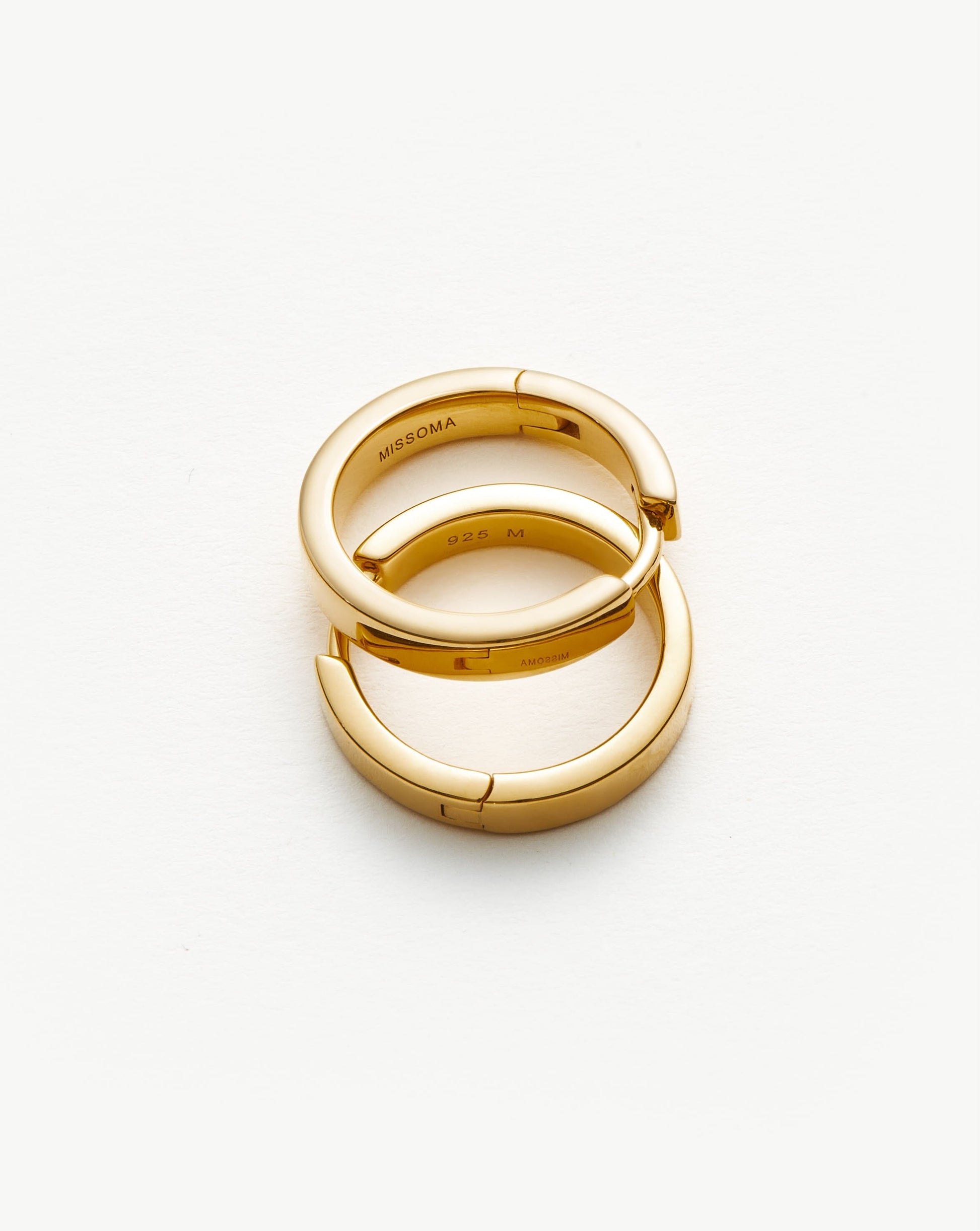 Introducing our lightest ever hoops — an elevated collection of everyday essentials that are anything but basic. An upgrade on a classic silhouette, these flat surfaced small hoops have been handcrafted to become your new core staples. Plus, they feature a hidden hinge for a seamless closure. Wear solo or style with studs and mini hoops for an instant ear stack. Also available in medium.