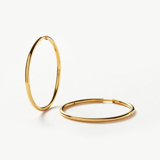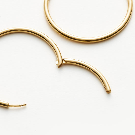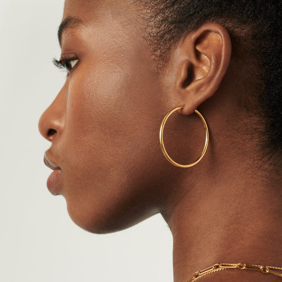 An elevated collection of everyday essentials that are anything but basic. These simple large hoops have been handcrafted to become your new core staples. Plus, they feature a hidden hinge for a seamless closure. Wear solo or style with studs and mini hoops for an instant ear stack. Also available in small, medium and oversized.