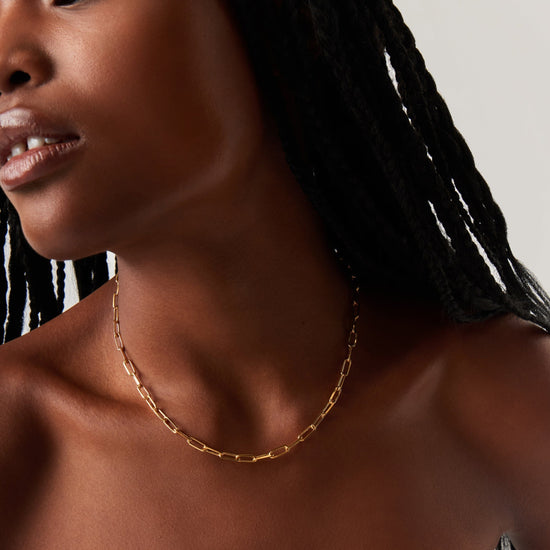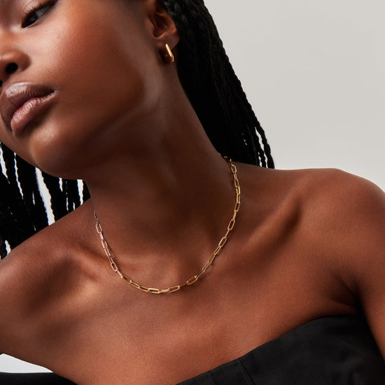 Make this delicate paperclip chain the starting point for all your necklace layering looks. Team with other chains or pendant necklaces. Also available in the Classic Mini Paperclip Chain Bracelet.