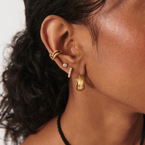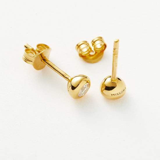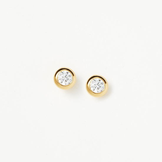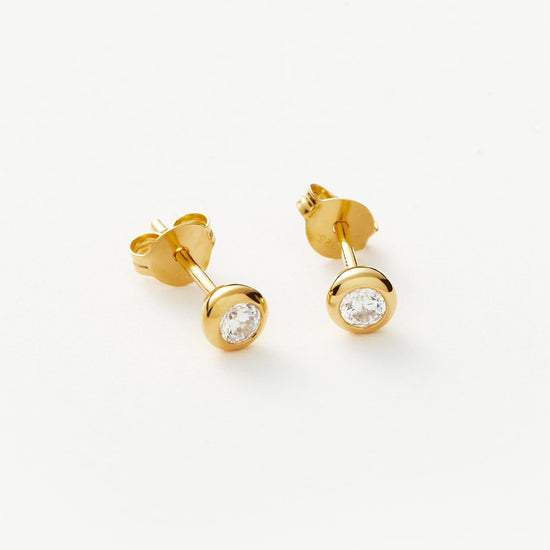 Upgrade your everyday ear stack with these versatile rounded studs, featuring cubic zirconia stones set in gold collets. Fastening with butterfly closures, contrast with chubby huggies or wear solo for simple styling.