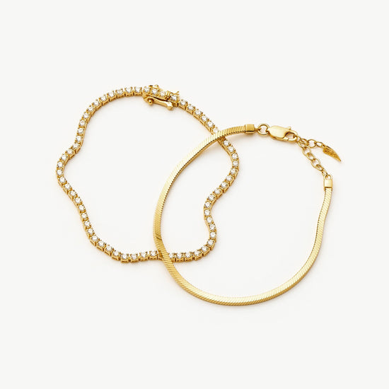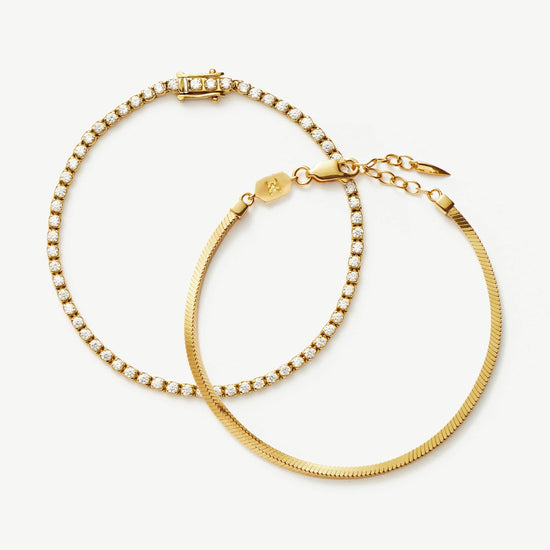 Classic Tennis & Snake Chain Bracelet Set