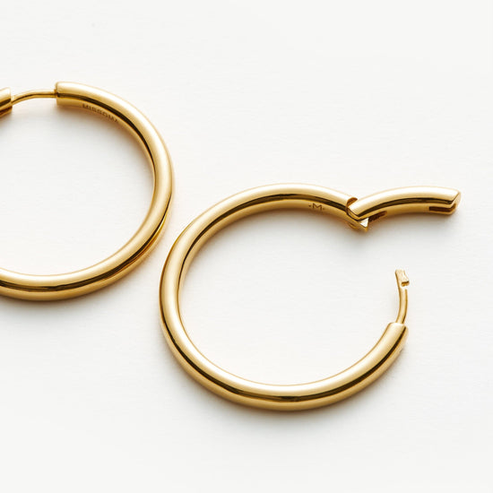 Introducing our lightest ever hoops — an elevated collection of everyday essentials that are anything but basic. An upgrade on a classic silhouette, these medium-sized tunnel hoop earrings have been upgraded to be lighter and feature a hidden hinge for a seamless closure. Wear solo or style with studs and mini hoops for an instant statement ear stack. Also available in large, small and mini.