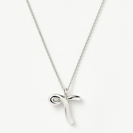 Curly Molten Initial Pendant Necklace - T