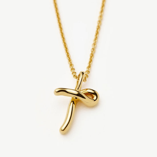 Curly Molten Mini Initial Necklace - T