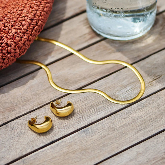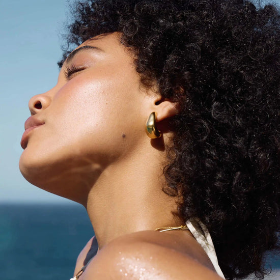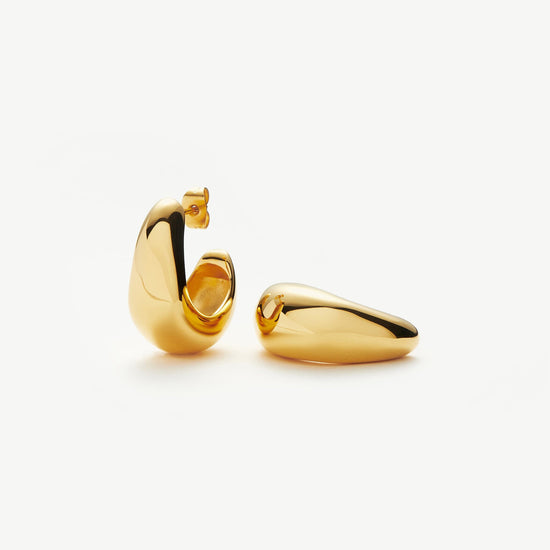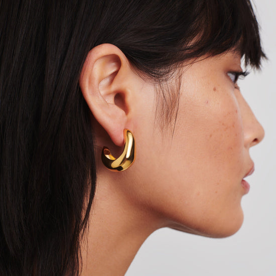 These sculptural medium-sized chunky hoops feature an organic-inspired domed design. Handcrafted for everyday wear, the earrings are super lightweight and feature a high-shine finish. Pair with domed huggies to create a scaled hoop ear stack.