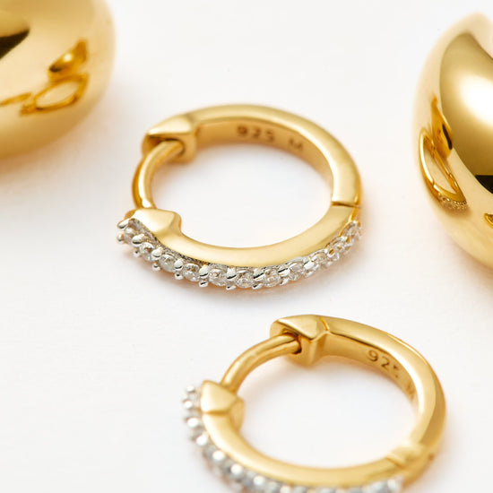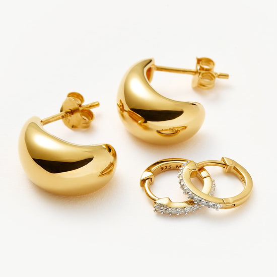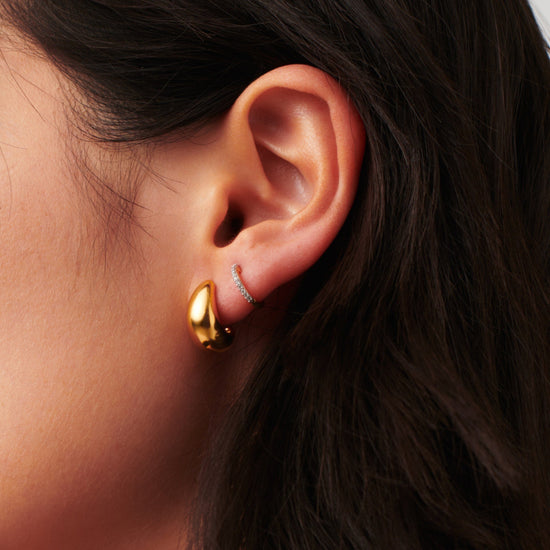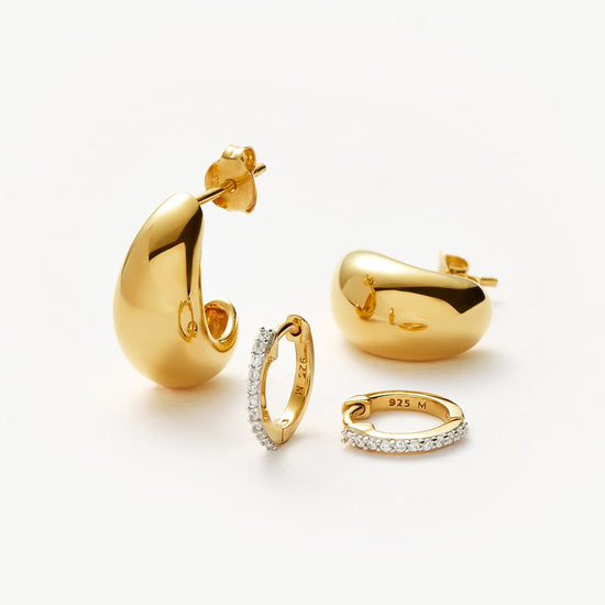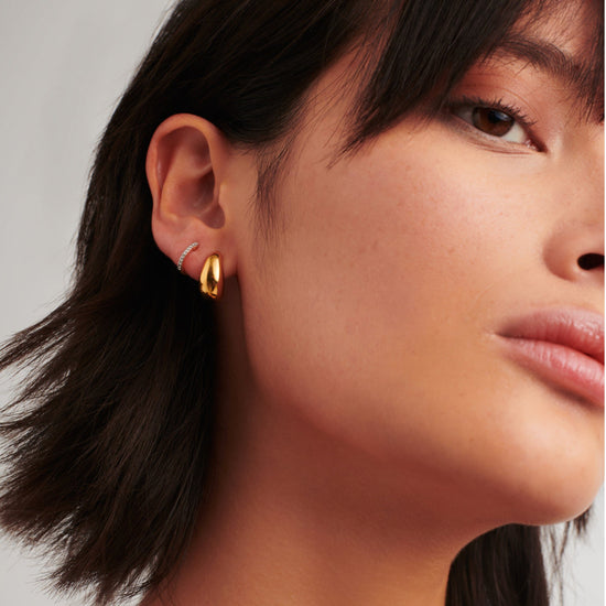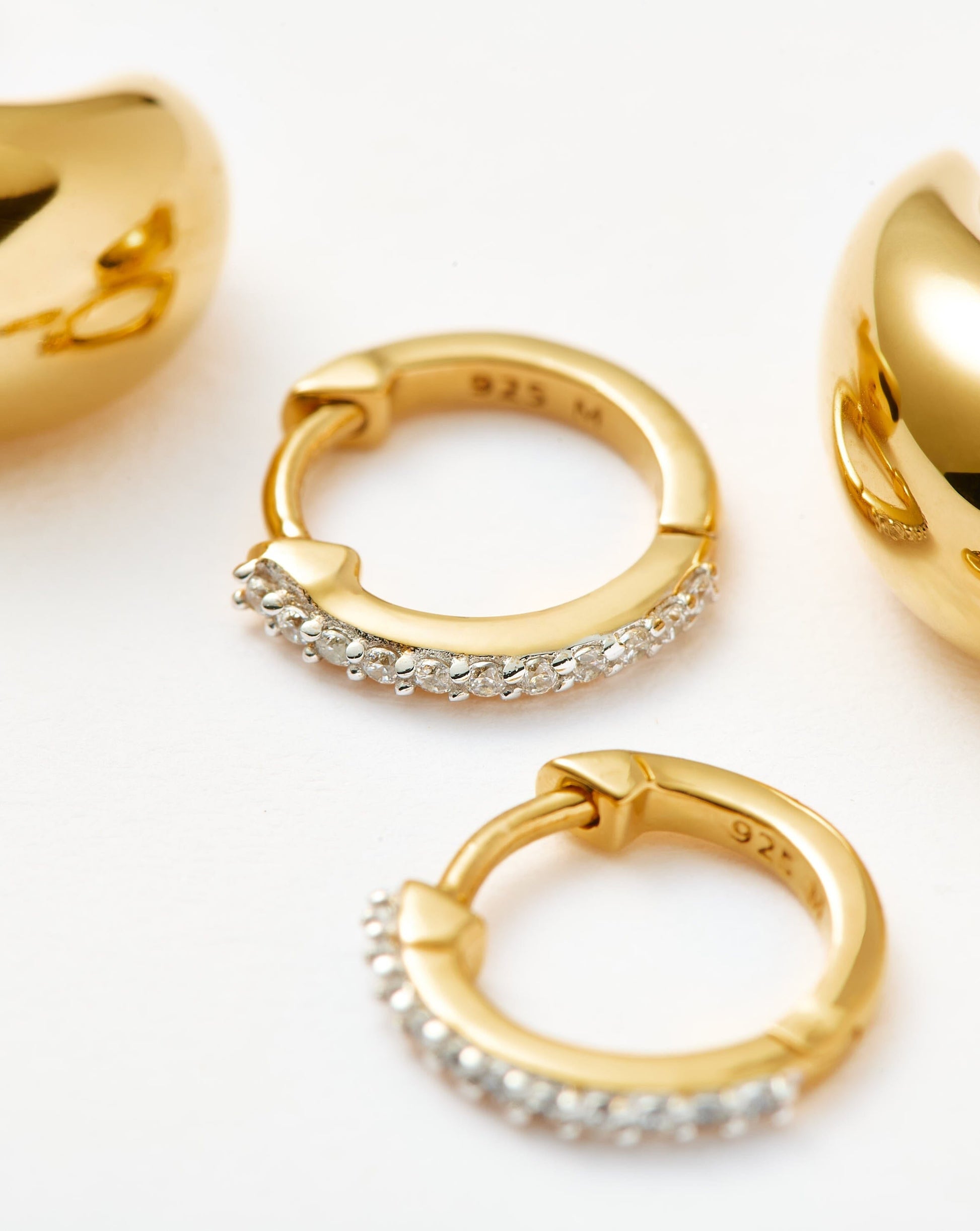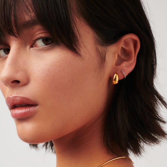 Upgrade your ear stack with a standout set. Teamed together, the Classic Pave Huggies and Savi Dome Small Hoops make a unique impact. Save more when buying them together.