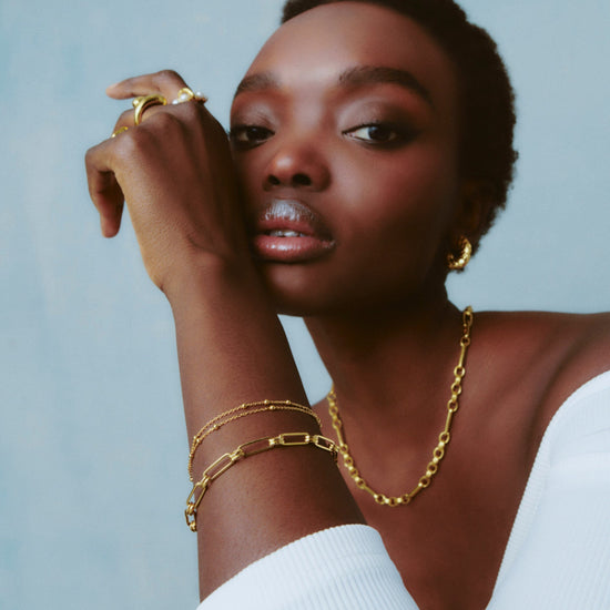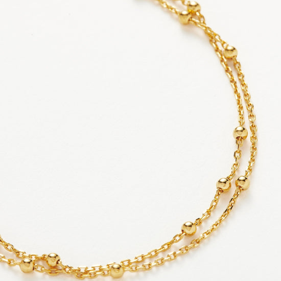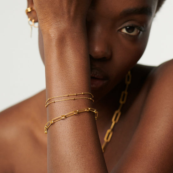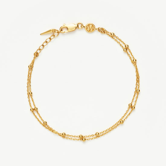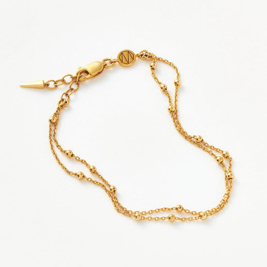 Upgrade your layers with a delicate addition. Featuring two chains with bobble detailing, this best selling bracelet easily fastens with a clasp. Two bracelets in one, pair with a cuff for the ultimate arm stack or with the matching double chain necklace. Layer for less when bought as a set Aegis Double Chain Bracelet Set.