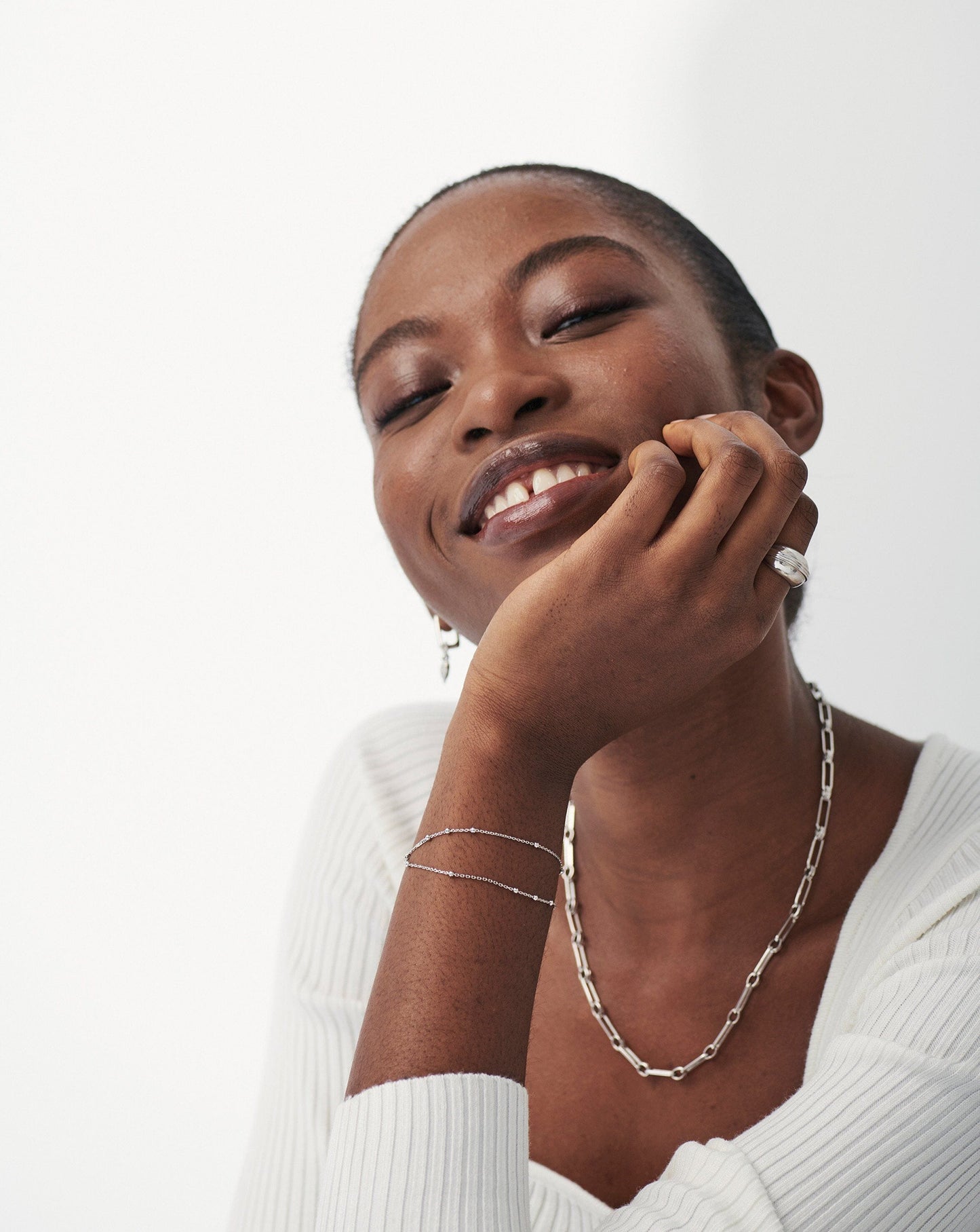 Upgrade your layers with a delicate addition. Featuring two chains with bobble detailing, this best selling bracelet easily fastens with a clasp. Two bracelets in one, pair with a cuff for the ultimate arm stack.