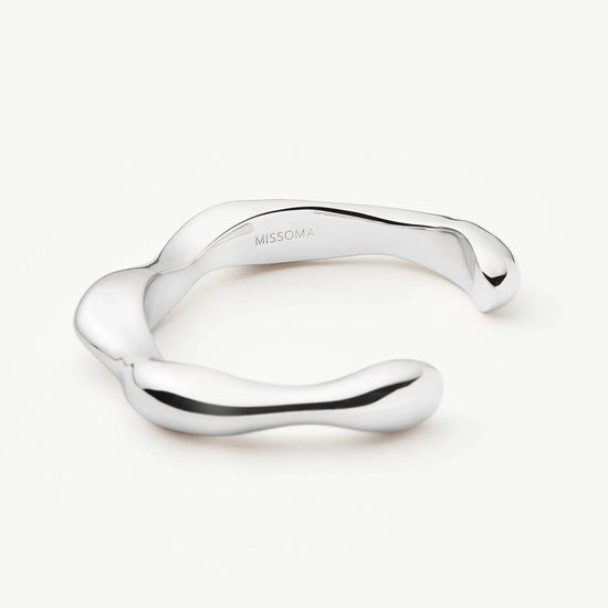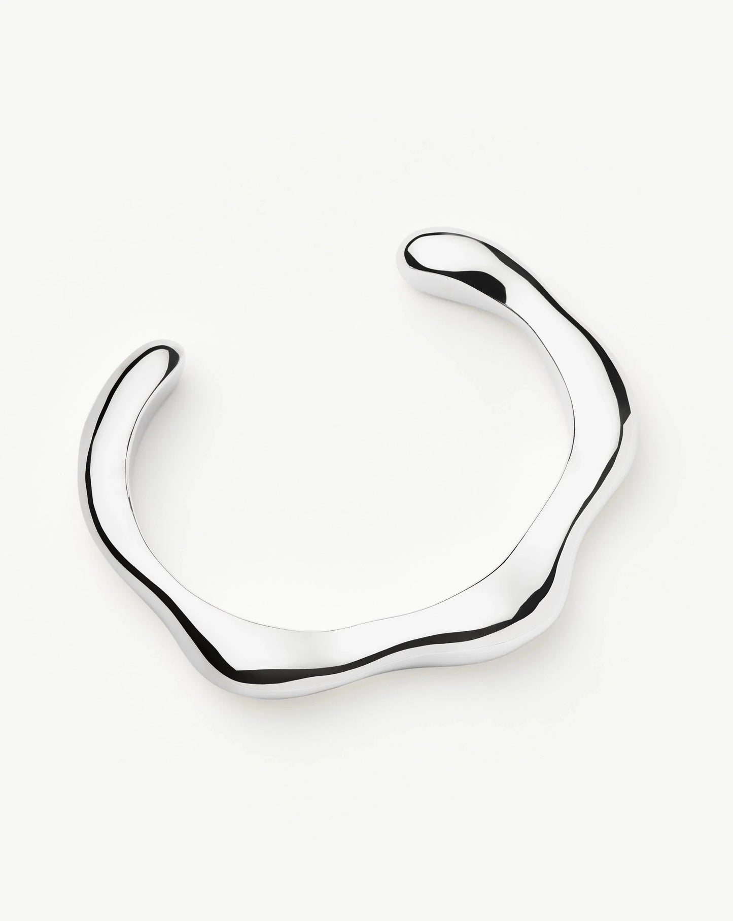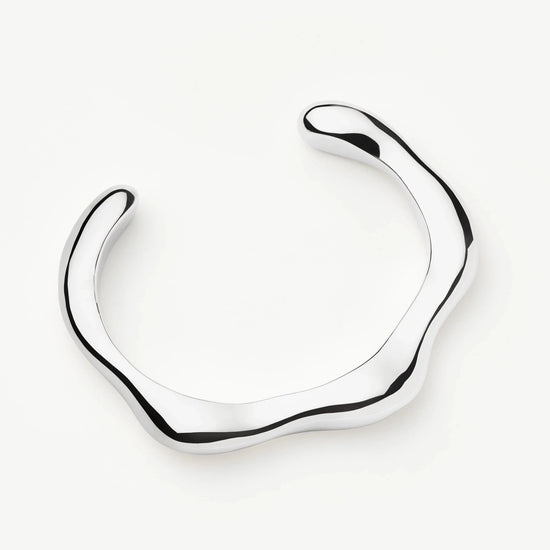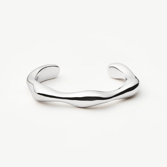 Redesign your layers with this playful open cuff that is inspired by nature, interiors, and sculpture. A wearable art piece featuring a puffy molten design, complement by stacking with bangles or chain bracelets.