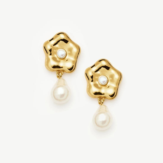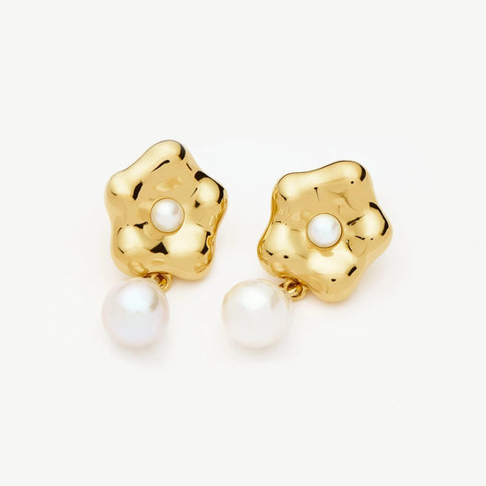 Eny Puffy Daisy Pearl Drop Earrings