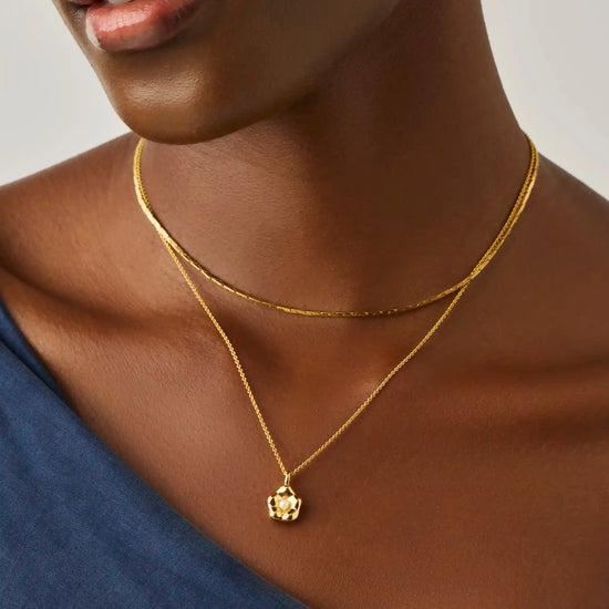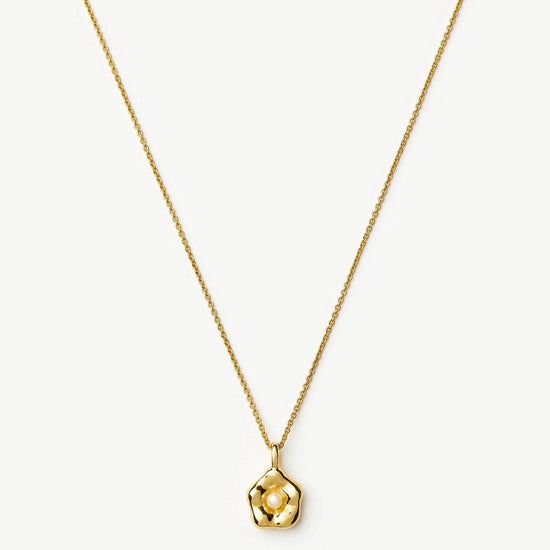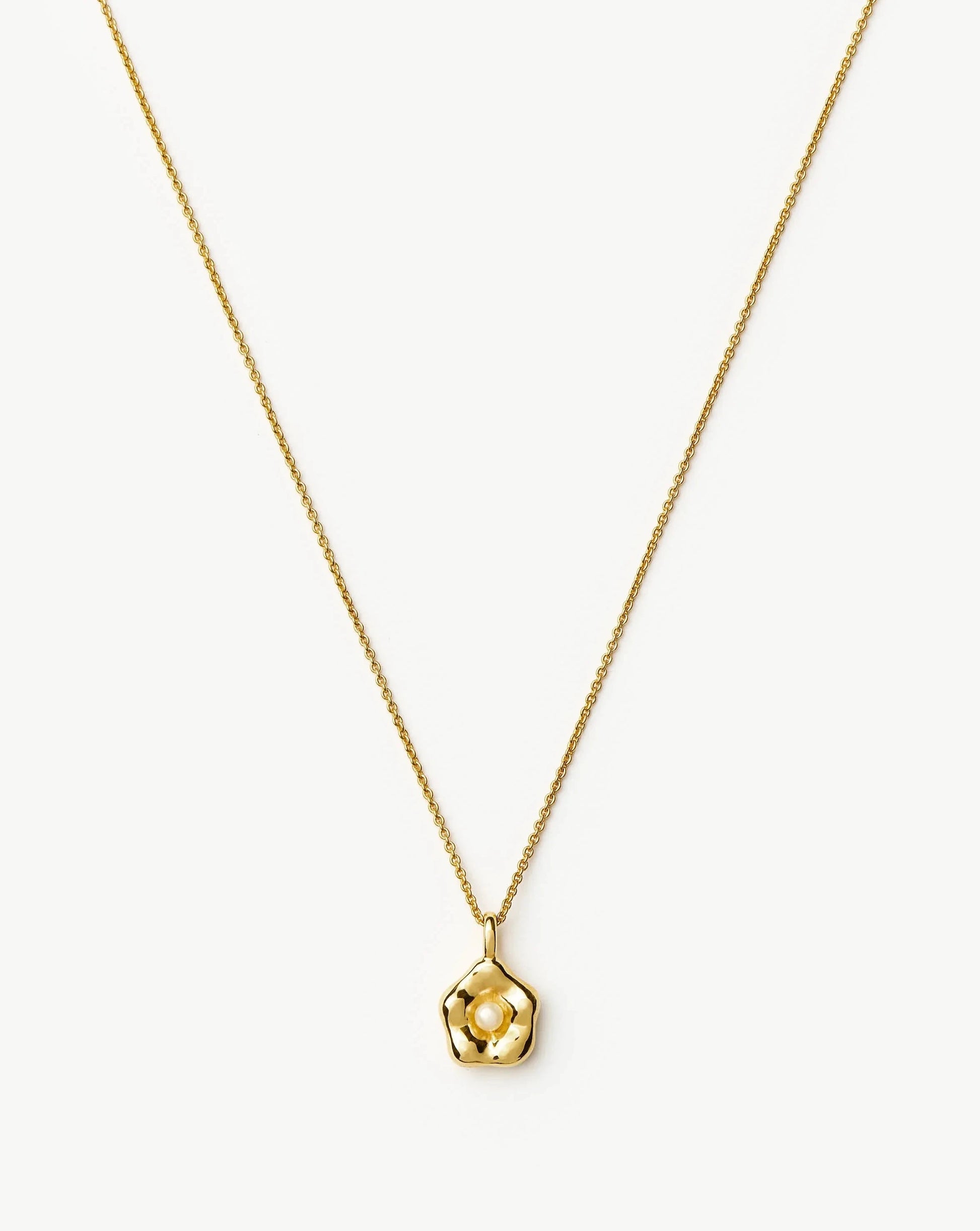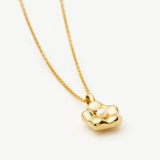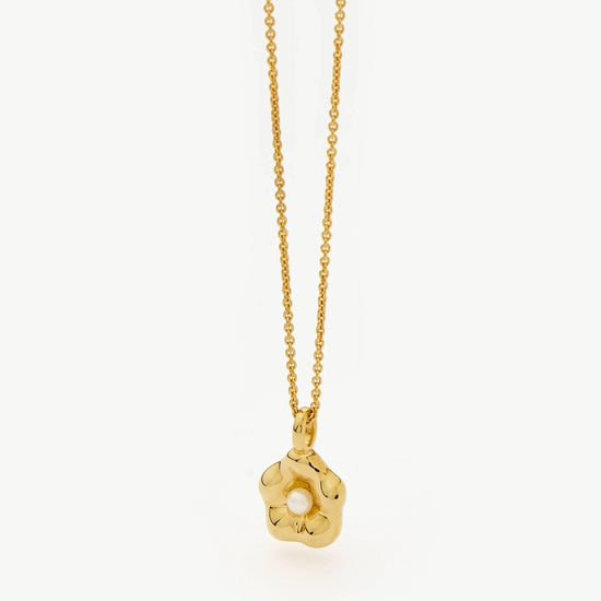 Inspired by Eny Lee's signature sculptures, this everyday necklace features a small puffy daisy pendant with a central button pearl. Layer up by pairing with classic gold chains or pearl necklaces.
