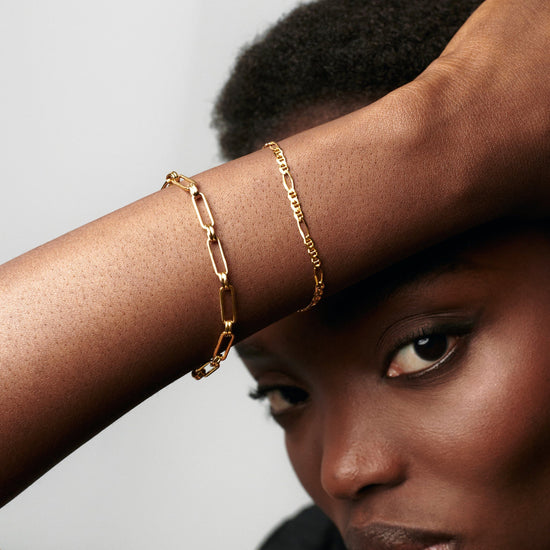 Explore Missoma's gold and silver bracelets, from minimalist cuffs to eye-catching charm bracelets. Our collection offers the perfect piece for every style. Whether you're looking to add a subtle touch of luxury or make a bold statement, you'll find the ideal bracelet to elevate any outfit. Discover your new favorite accessory today.