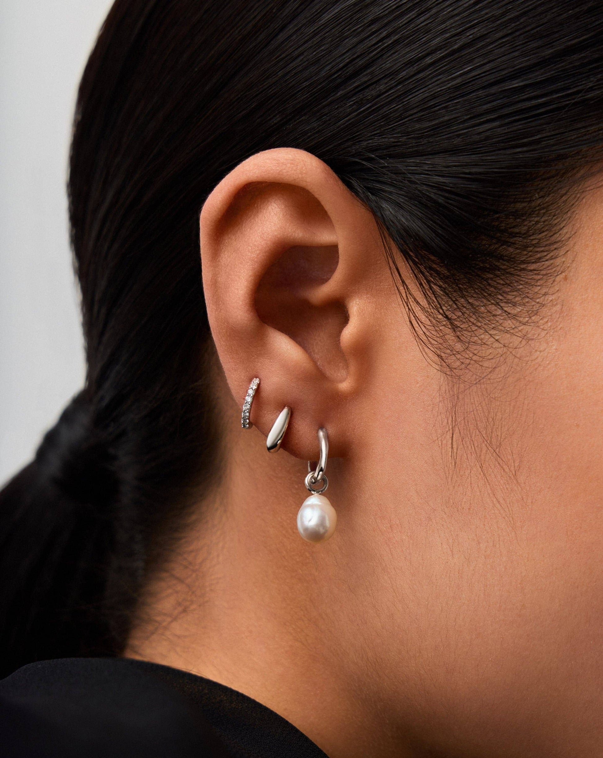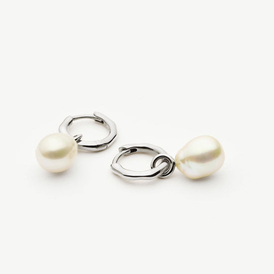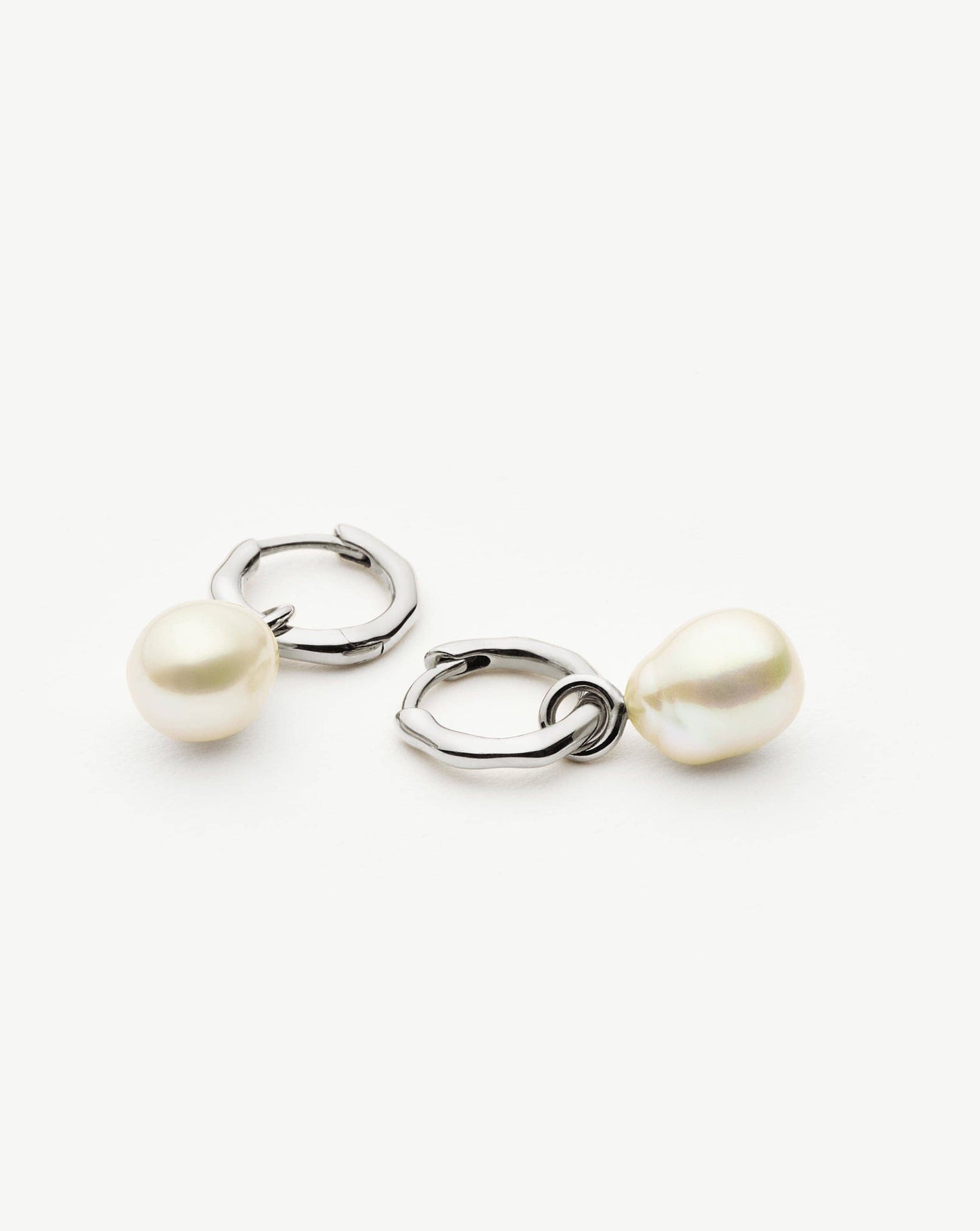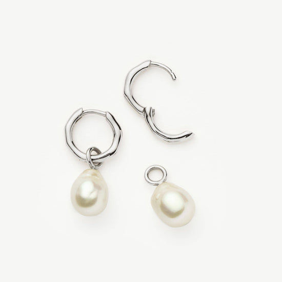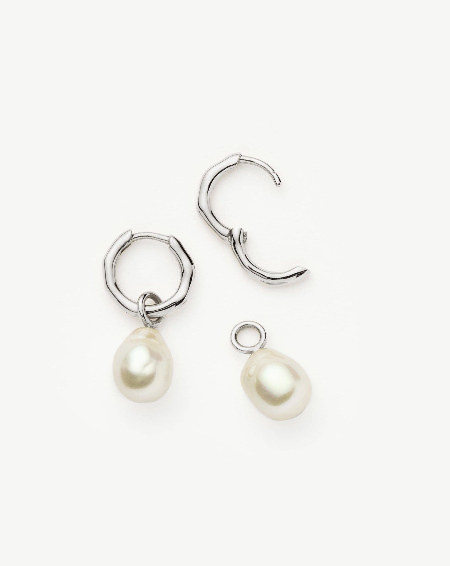 Organic baroque pearls are paired with sculptural 14k solid white gold mini hoops, featuring a hidden hinge for a seamless closure. Two earring styles in one — remove the charm to wear the mini hoops on their own.