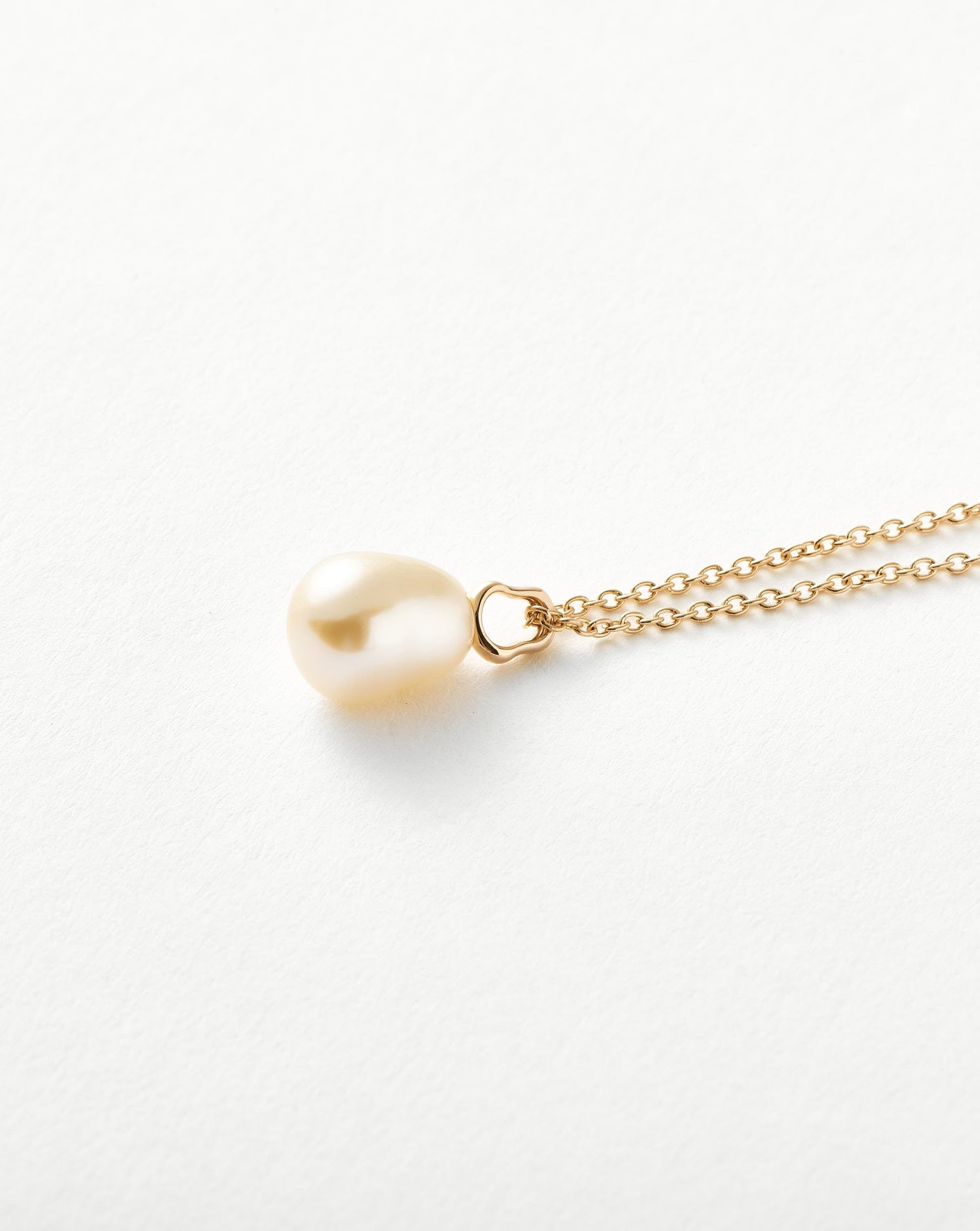 A uniquely shaped baroque pearl forms this organic pendant, paired with a delicate fine chain. Wear solo, or style with other fine necklaces for a more layered look. Handcrafted from 100% certified recycled solid gold, and hallmarked for authenticity. .