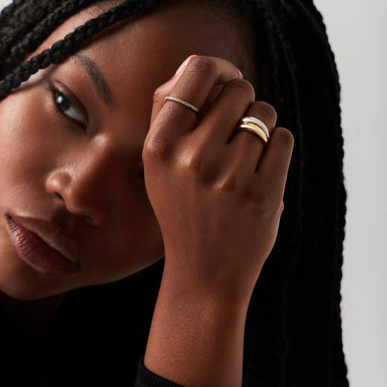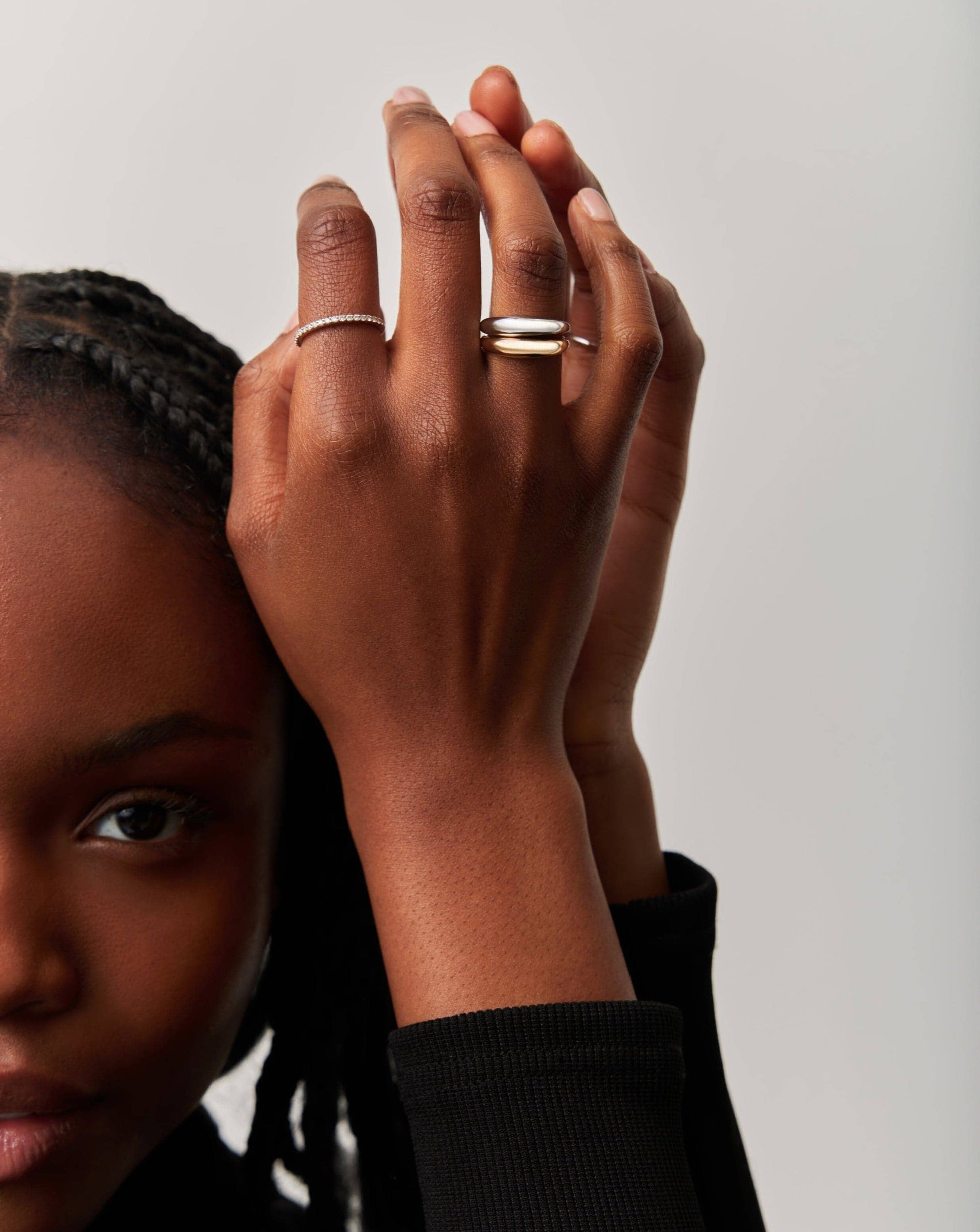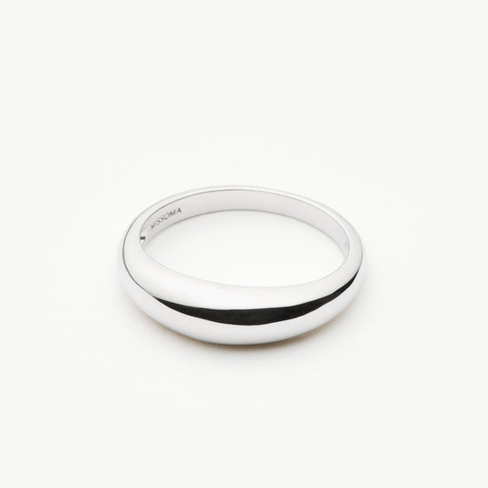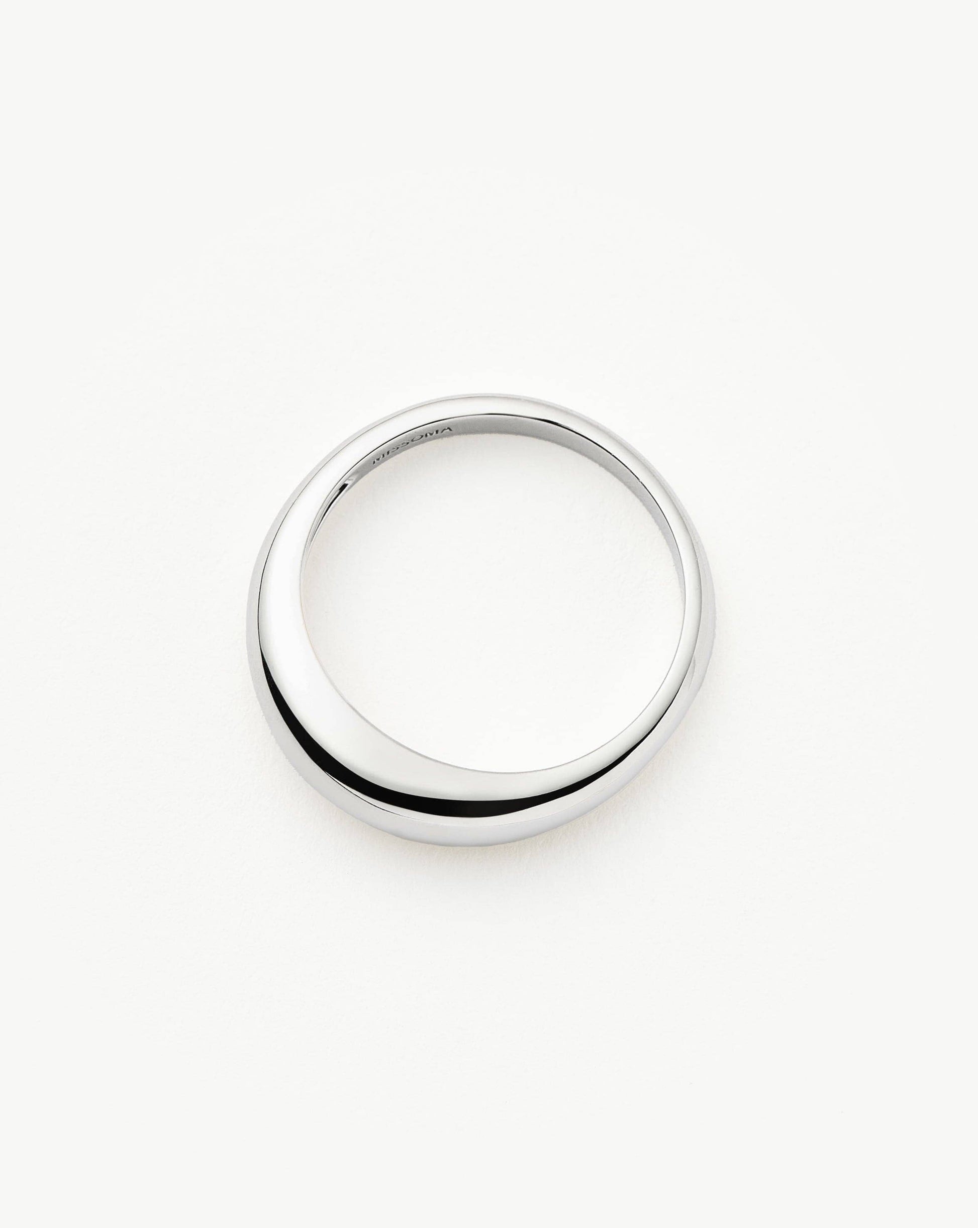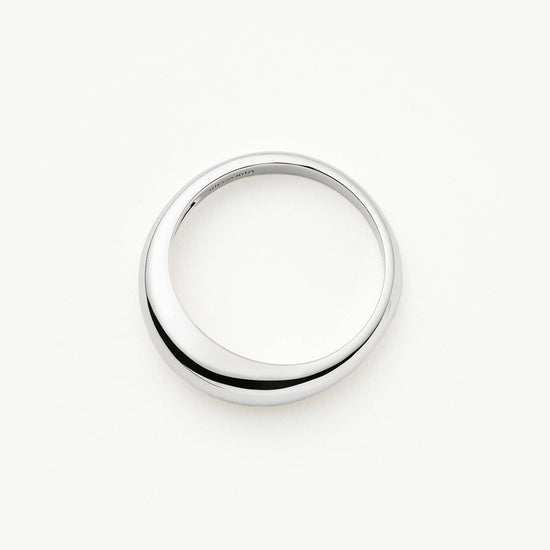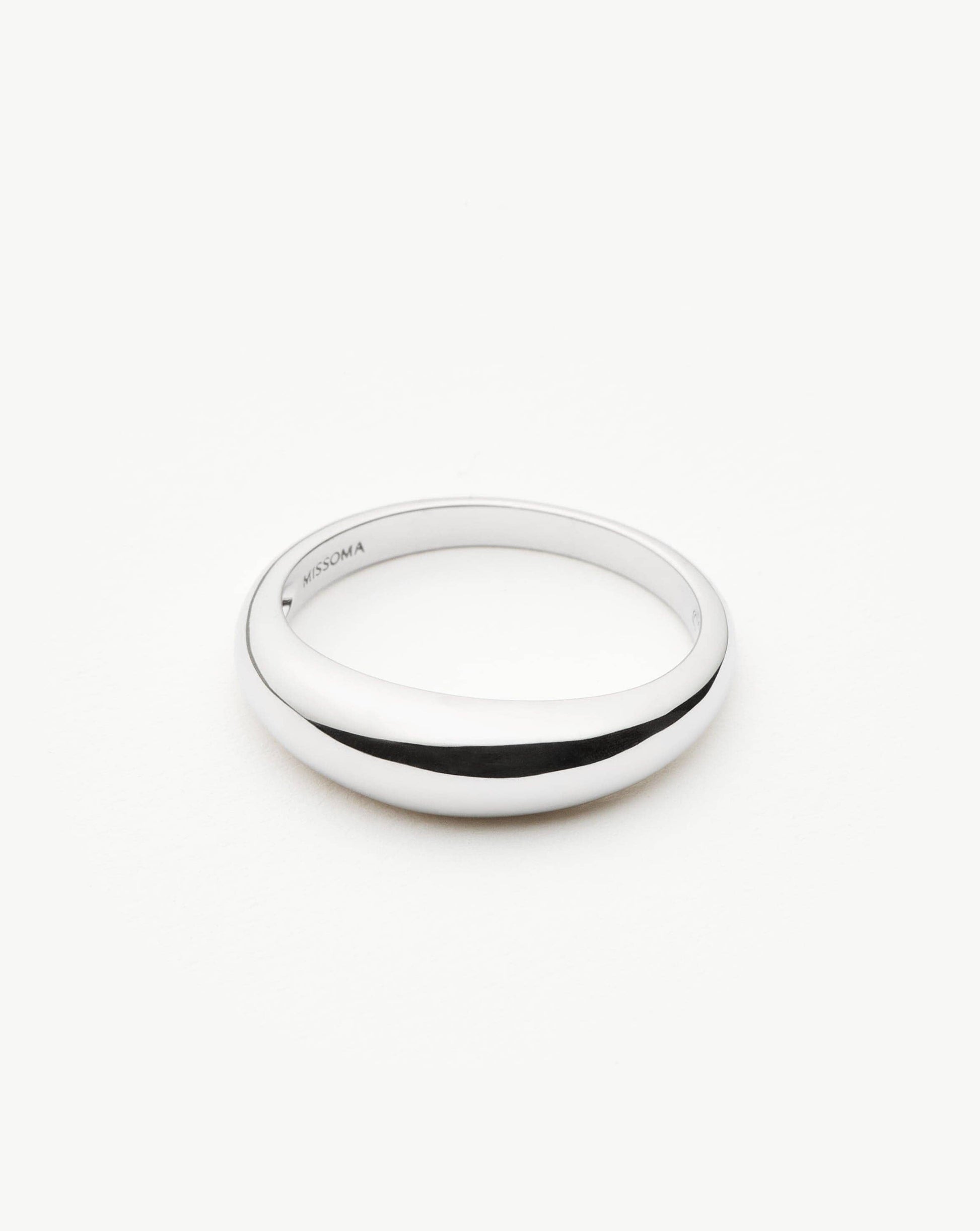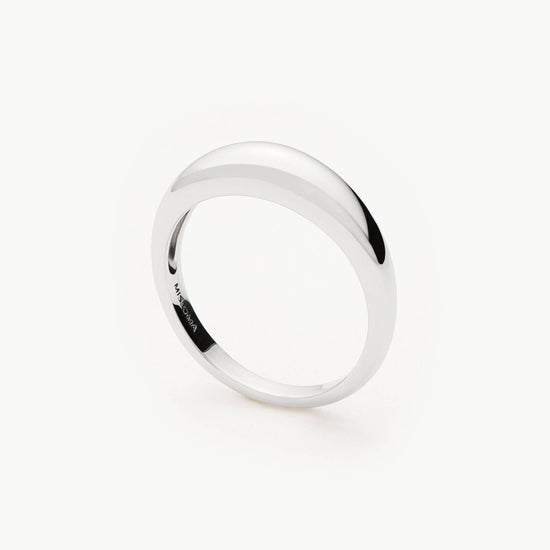 A forever piece, this delicate solid 14k solid white gold stacking ring features a tapered domed design. Wear solo or pair with more solid gold bands for a refined ring stack.