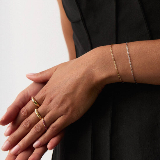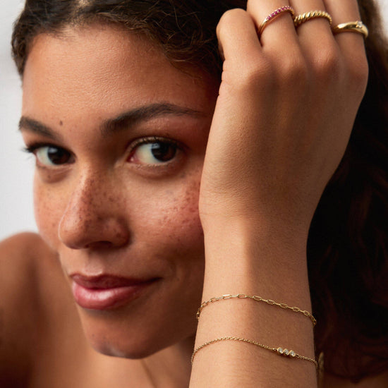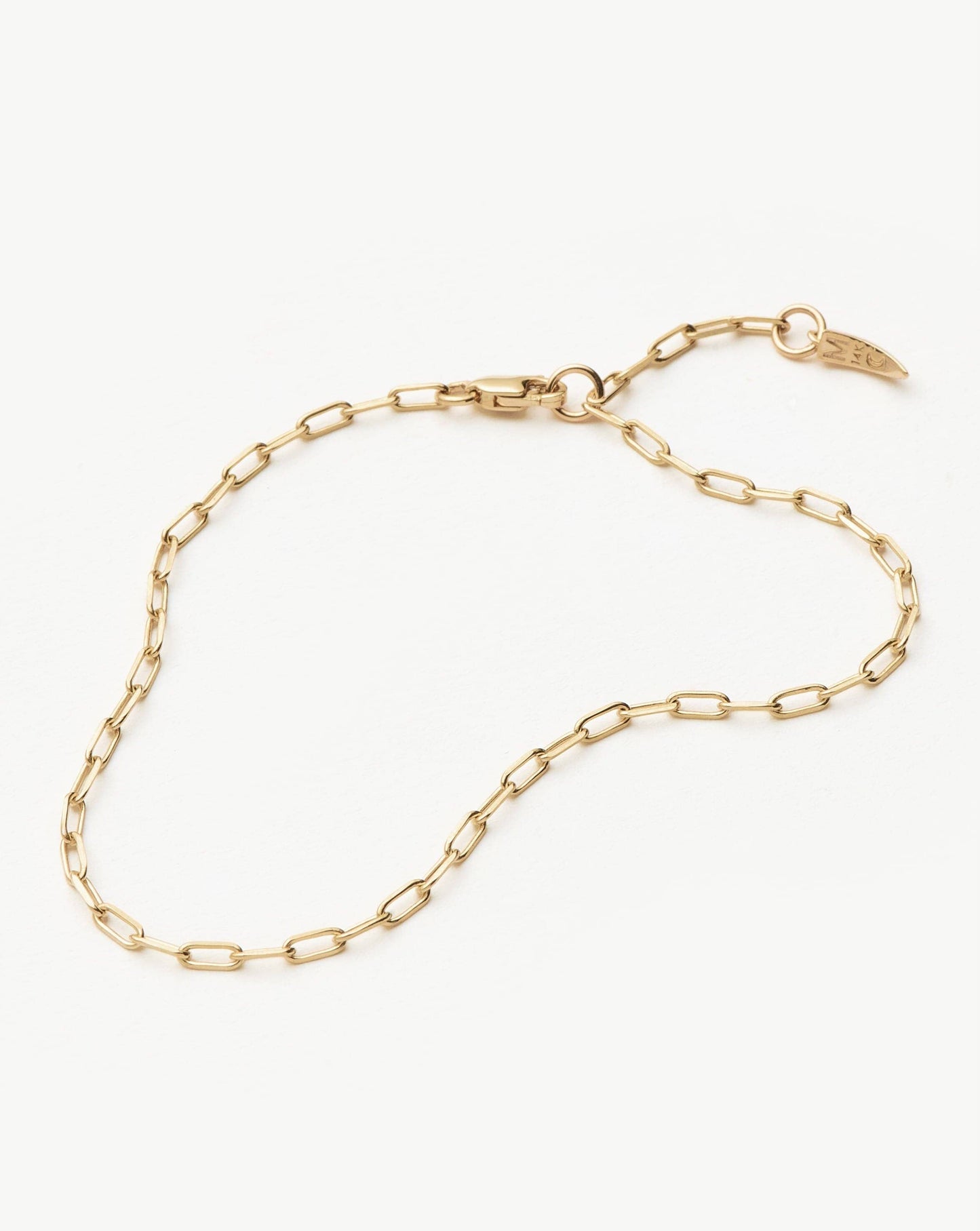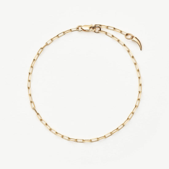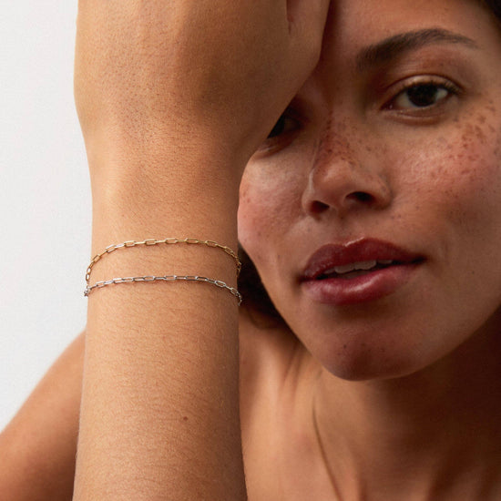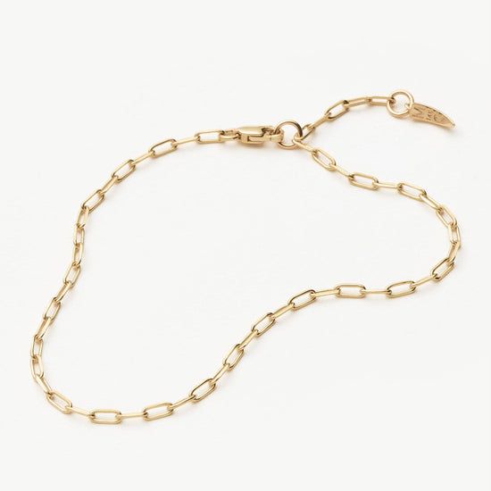 Discover your new forever chain bracelet, a 14k solid gold classic paperclip chain you'll never want to take off (and never have to). Wear solo or stack with more forever chains.