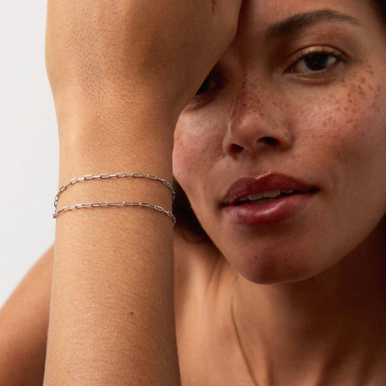 Discover your new forever chain bracelet, a 14k solid white gold classic paperclip chain you'll never want to take off (and never have to). Wear solo or stack with more forever chains.