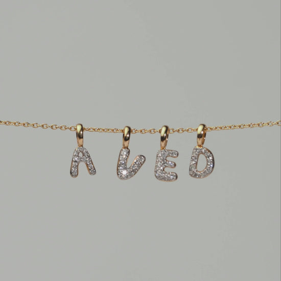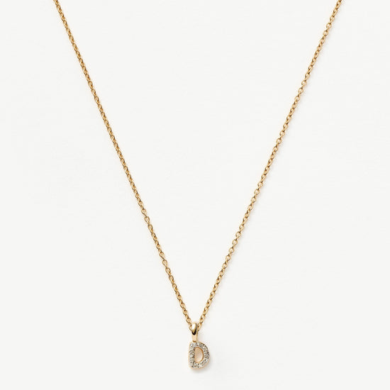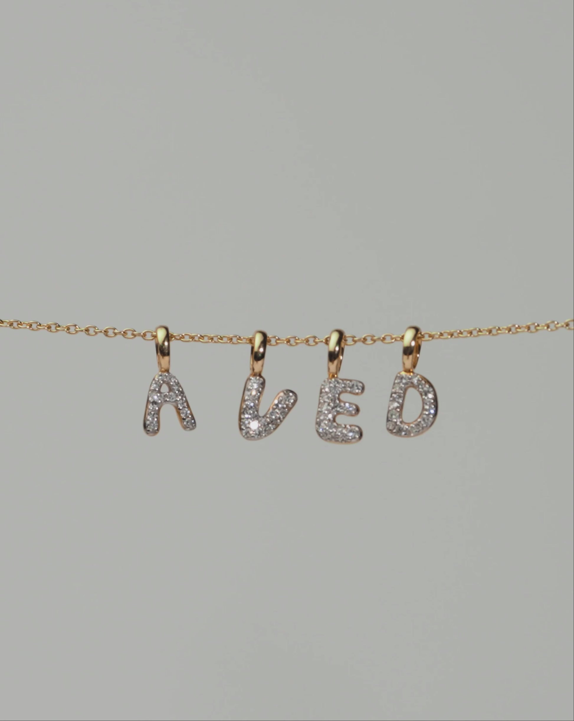 Spell it out in solid gold with a mini initial pendant necklace, featuring your chosen letter in a soft hand-drawn font and pave set white diamonds. A forever layering piece, keep it for yourself or give as the ultimate personalised gift.