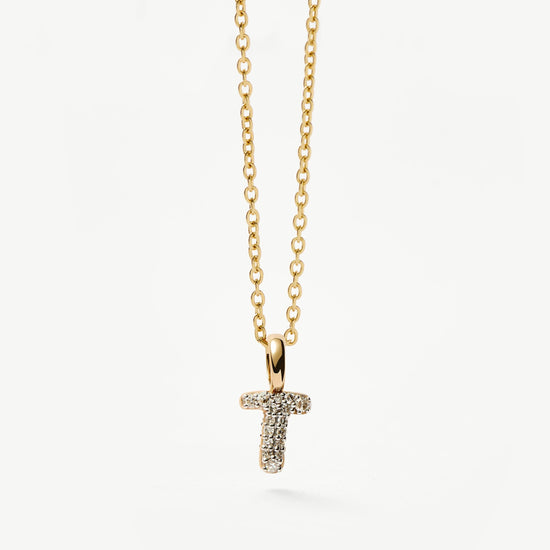 Spell it out in solid gold with a mini initial pendant necklace, featuring your chosen letter in a soft hand-drawn font and pave set white diamonds. A forever layering piece, keep it for yourself or give as the ultimate personalised gift.