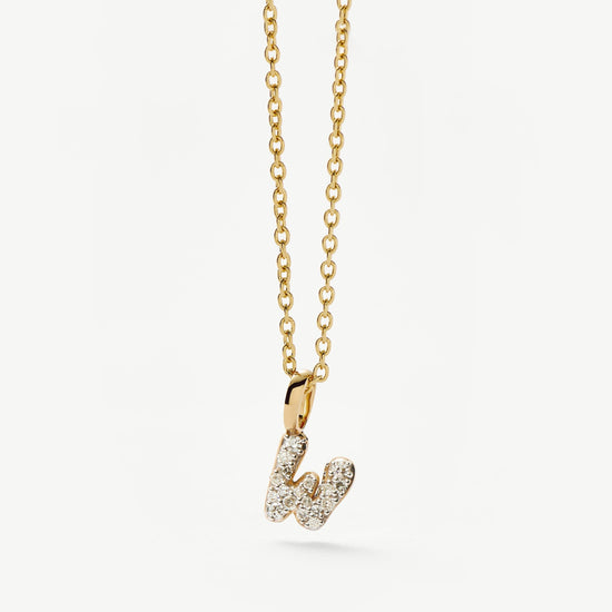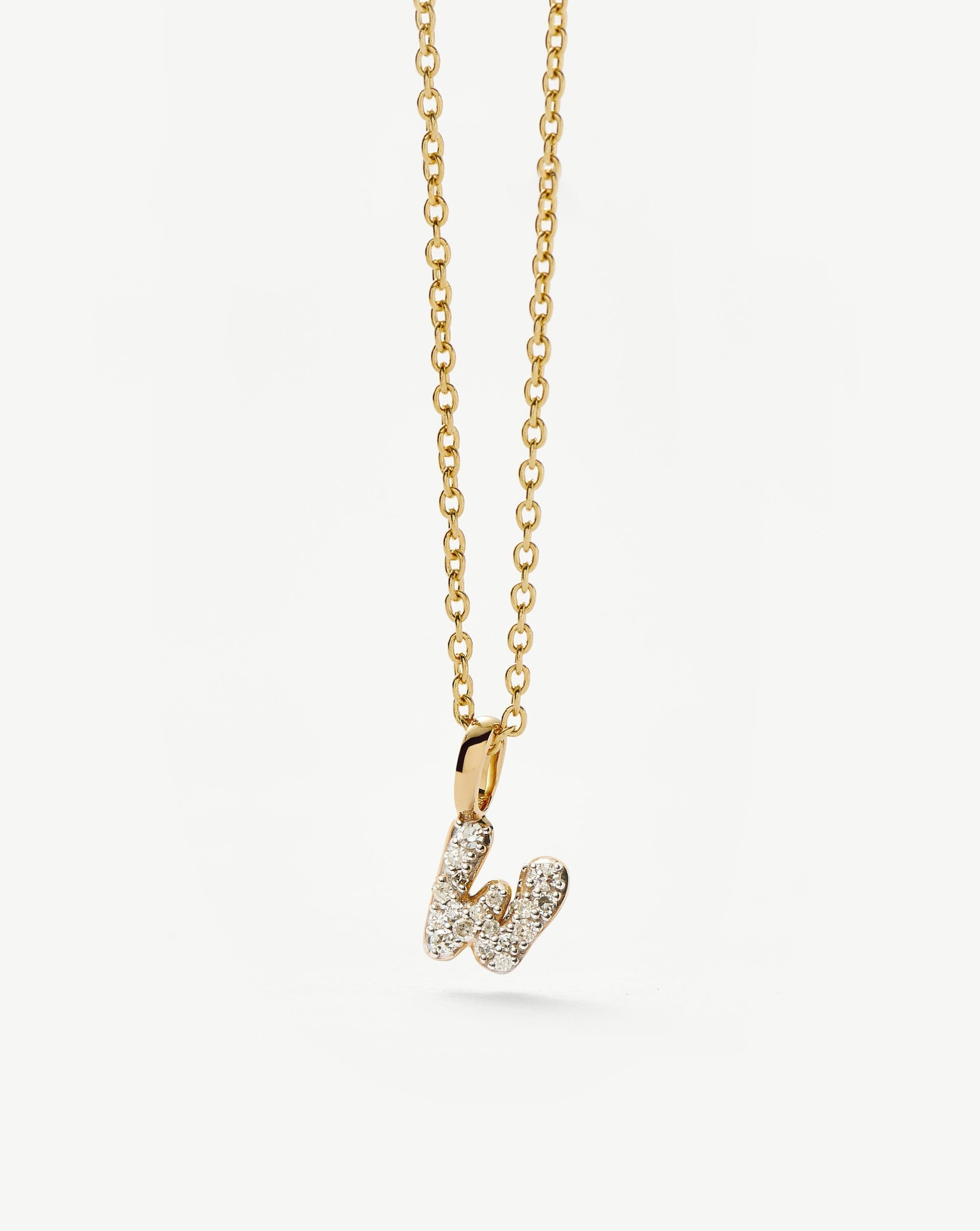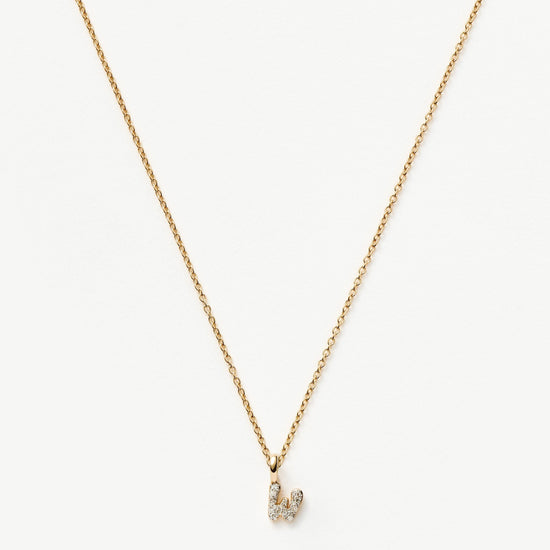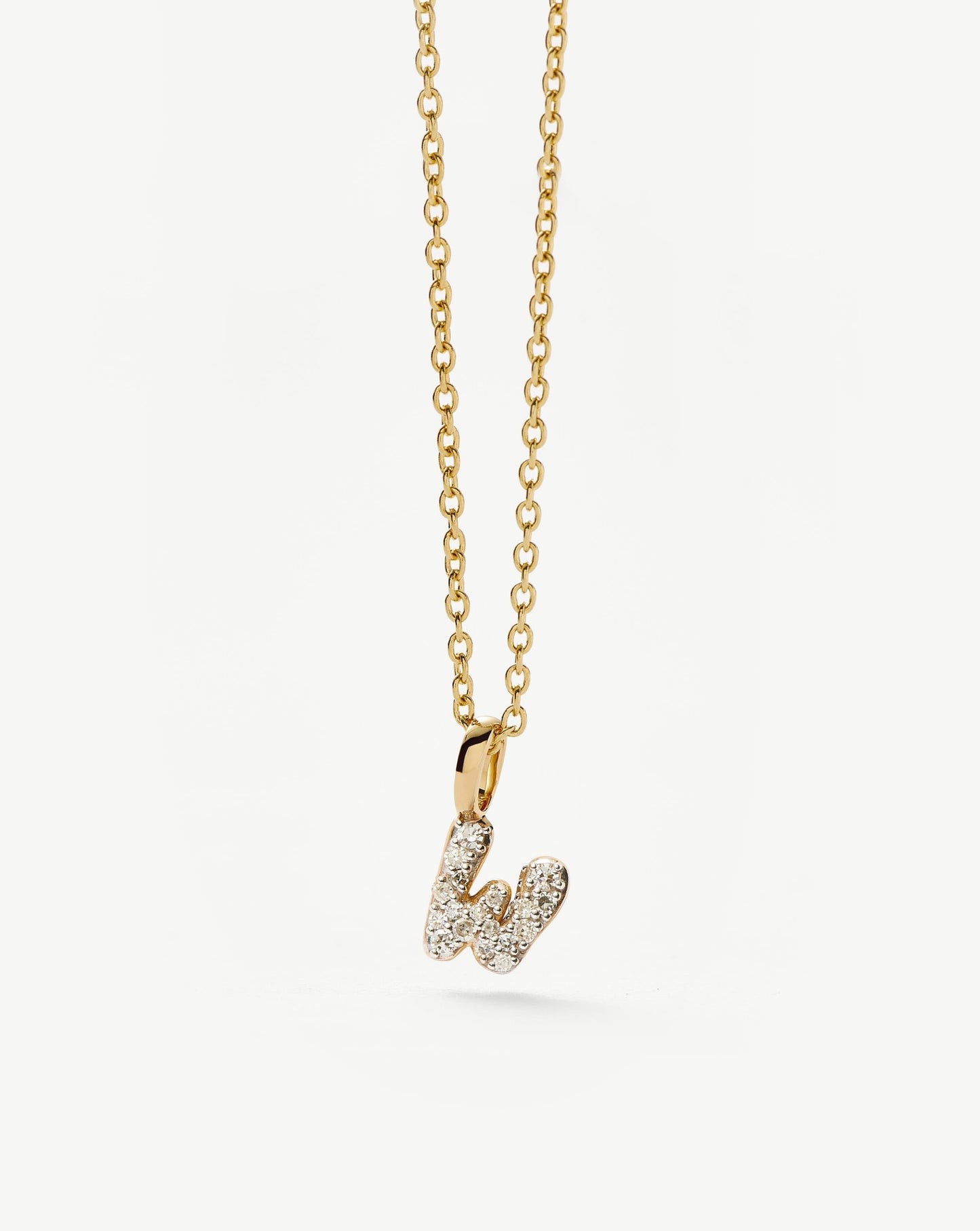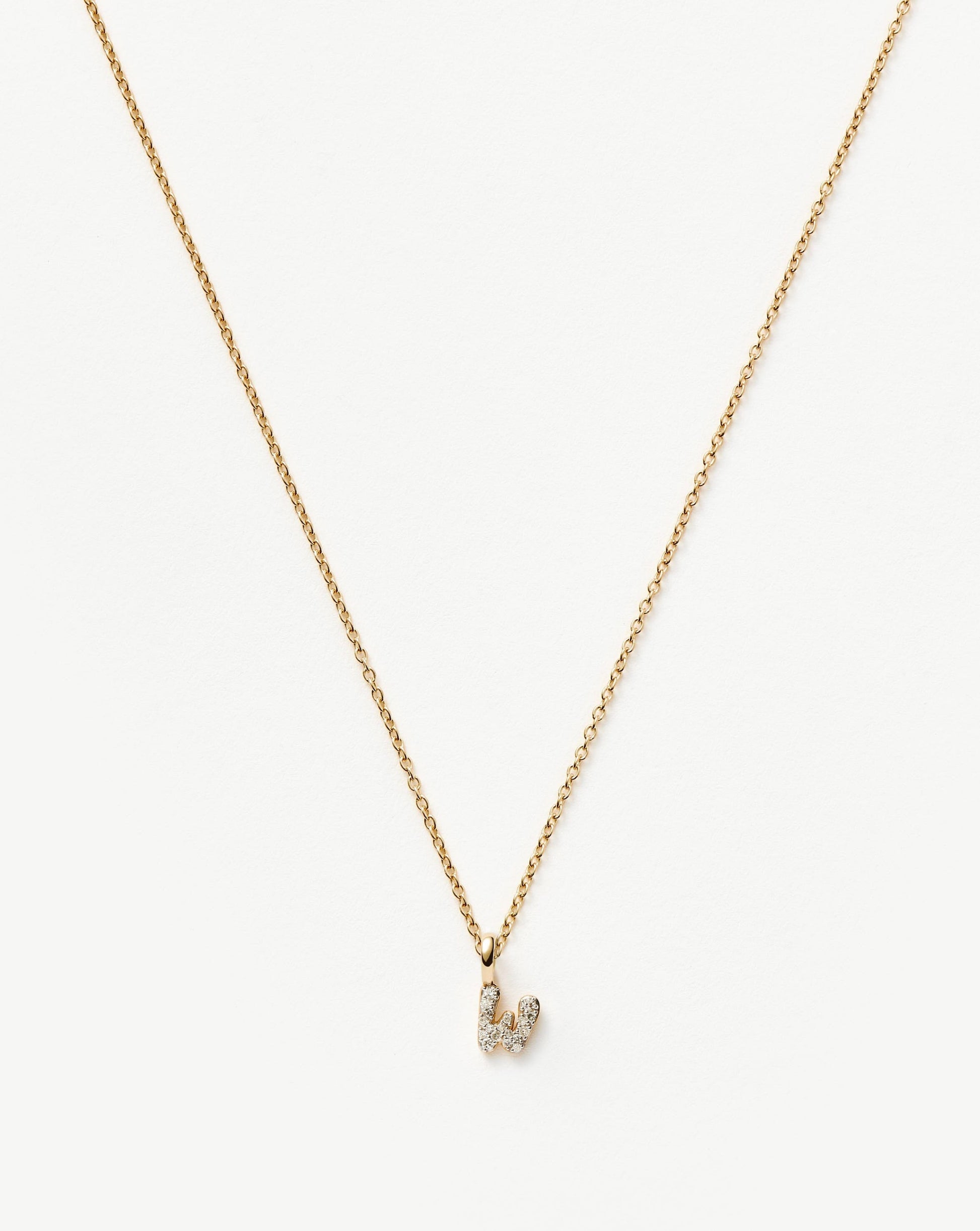 Spell it out in solid gold with a mini initial pendant necklace, featuring your chosen letter in a soft hand-drawn font and pave set white diamonds. A forever layering piece, keep it for yourself or give as the ultimate personalised gift.