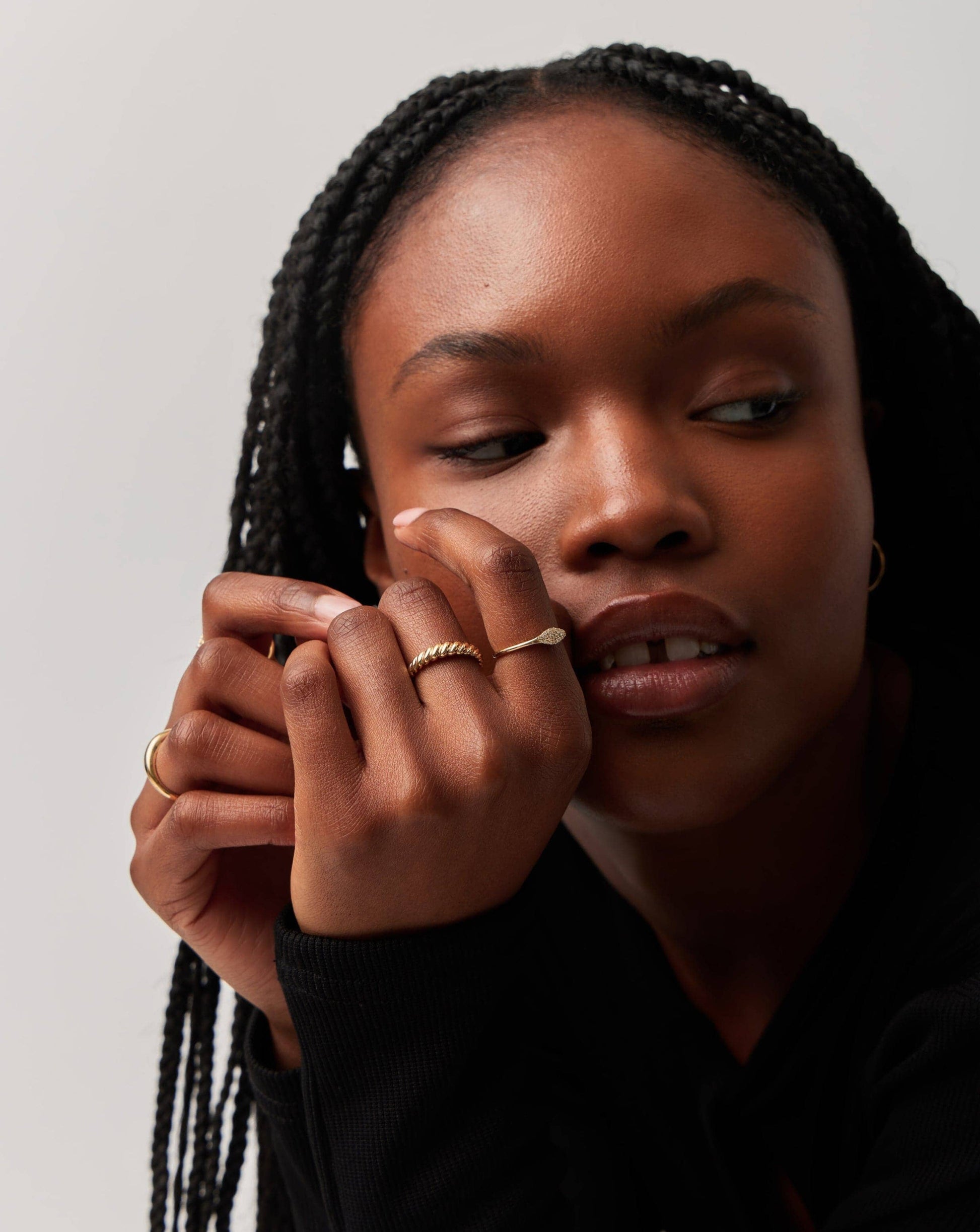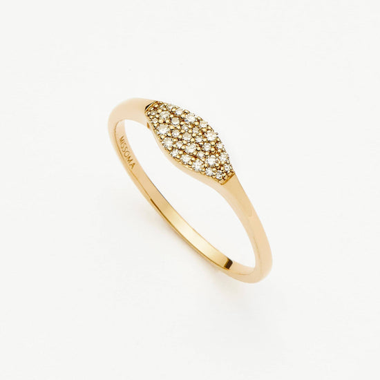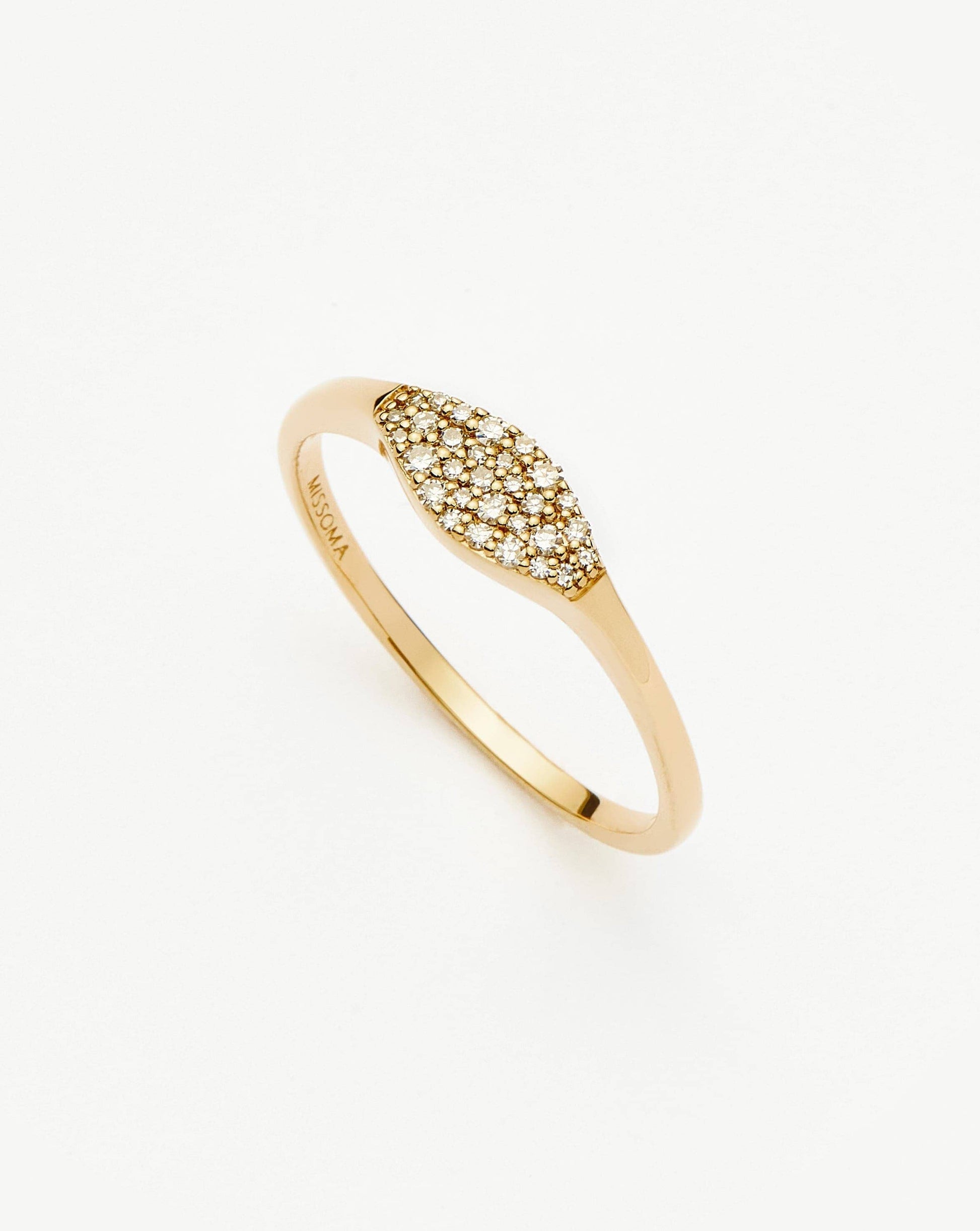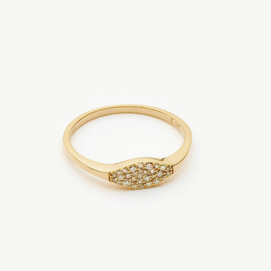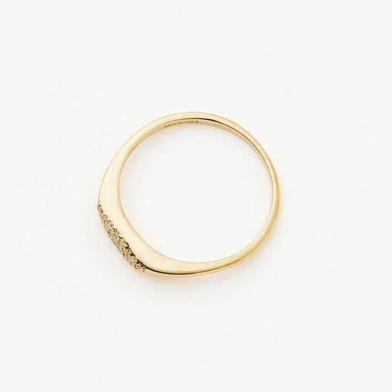 A forever piece, this delicate solid 14k gold signet ring features a thin band with a pave set diamond design. Wear solo or pair with more solid gold bands for a refined ring stack.