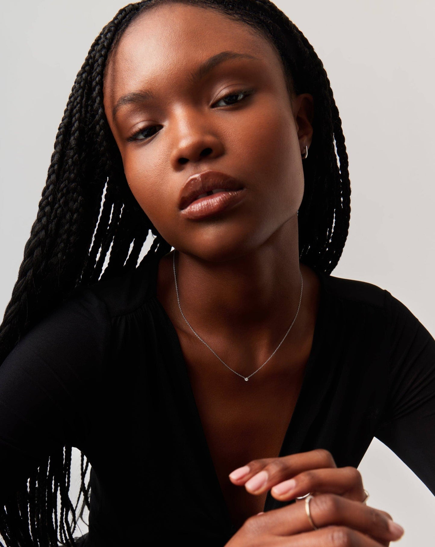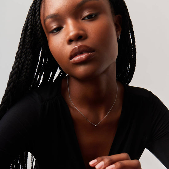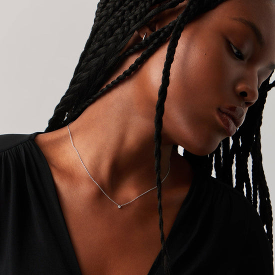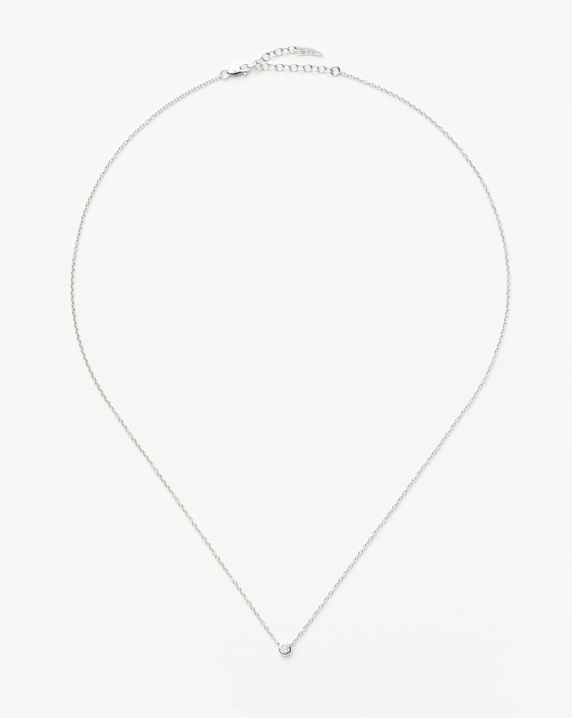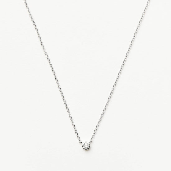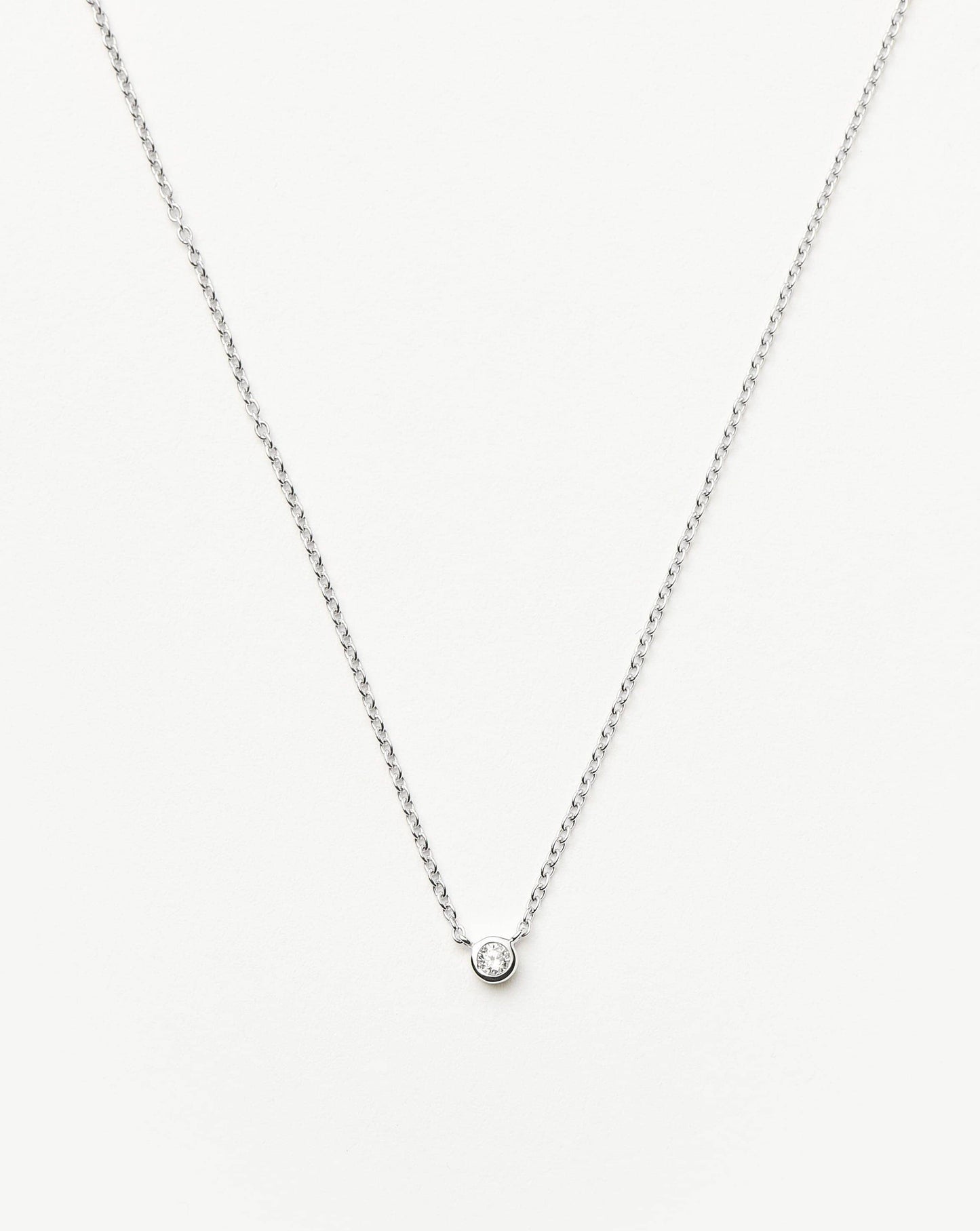 This timeless necklace features a floating solitaire diamond in a bezel setting on a classic 14k solid white gold chain. Wear solo or layer with more fine chains.