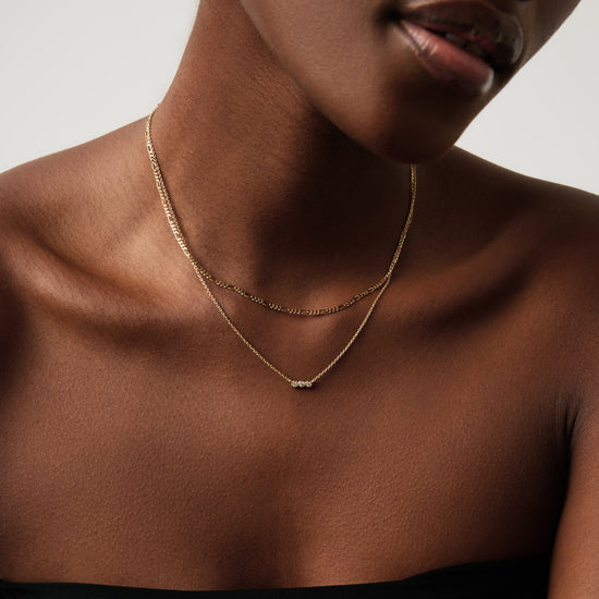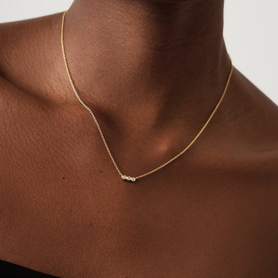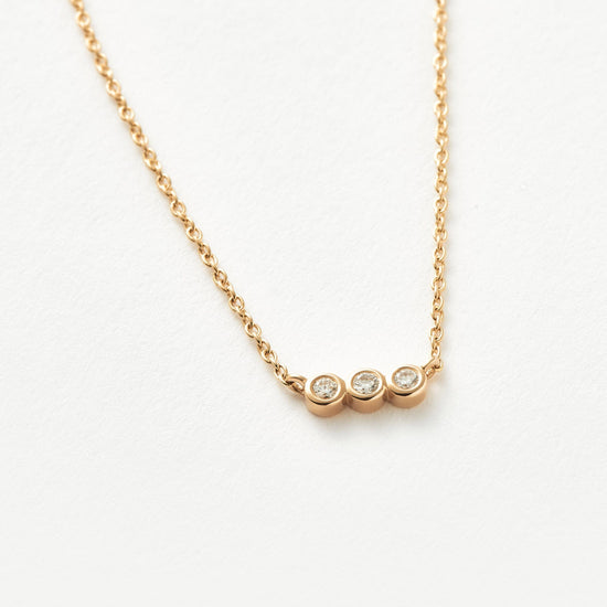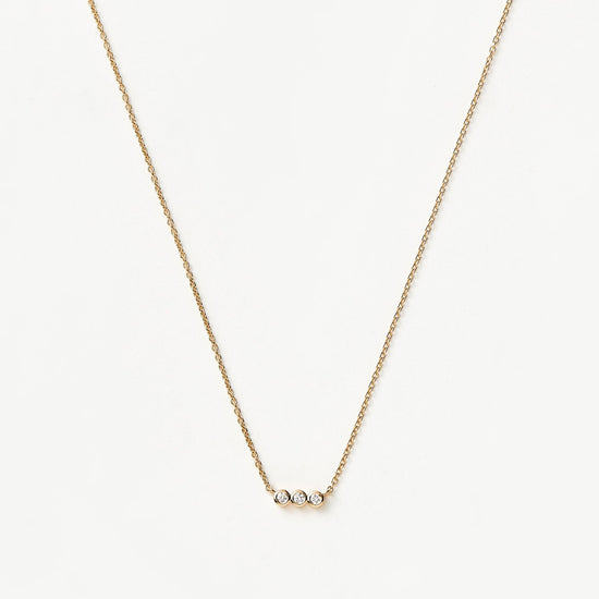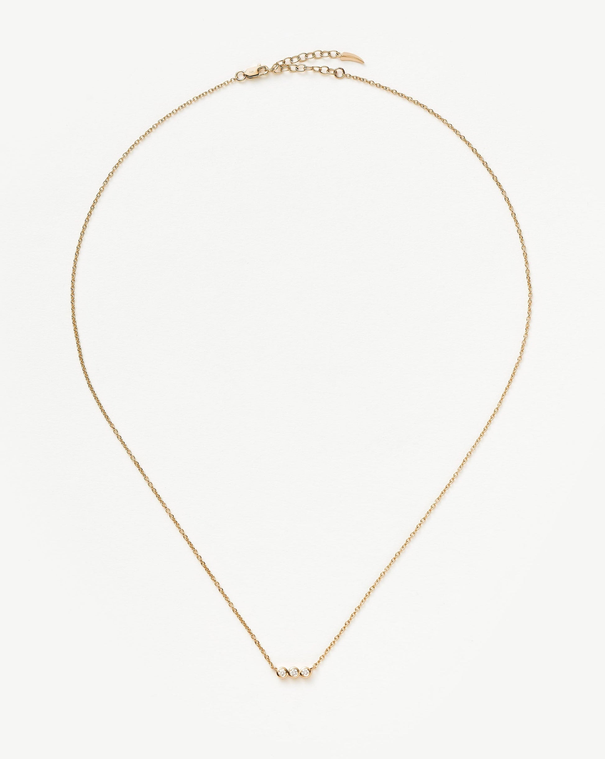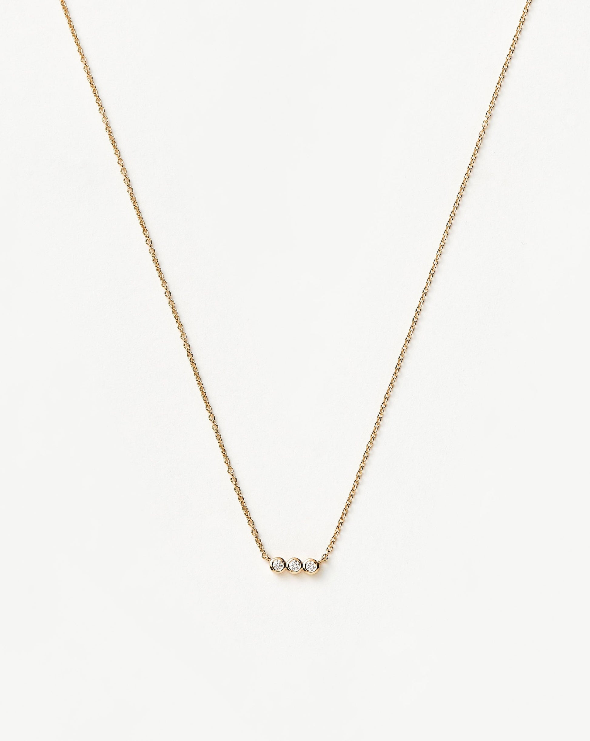 This timeless necklace features a floating pendant with three diamonds on a simple 14ct solid gold chain. Wear solo or layer with more fine chains.
