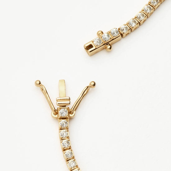 Introducing our first lab grown diamonds, this 14k solid gold bracelet is skilfully embellished and 100% traceable. Follow your bracelets journey through the passport icon - stacking sustainably never looked so good. Let it shine solo or layer with more forever chains. Each individual piece in our Tennis Collection takes 24 hours to craft by hand.