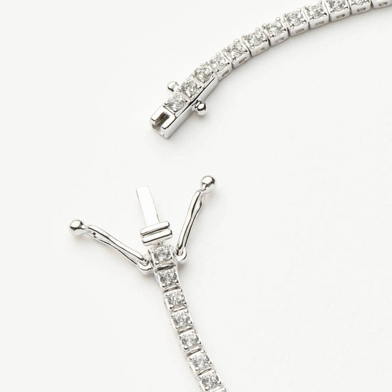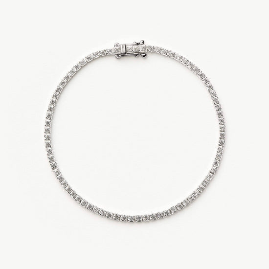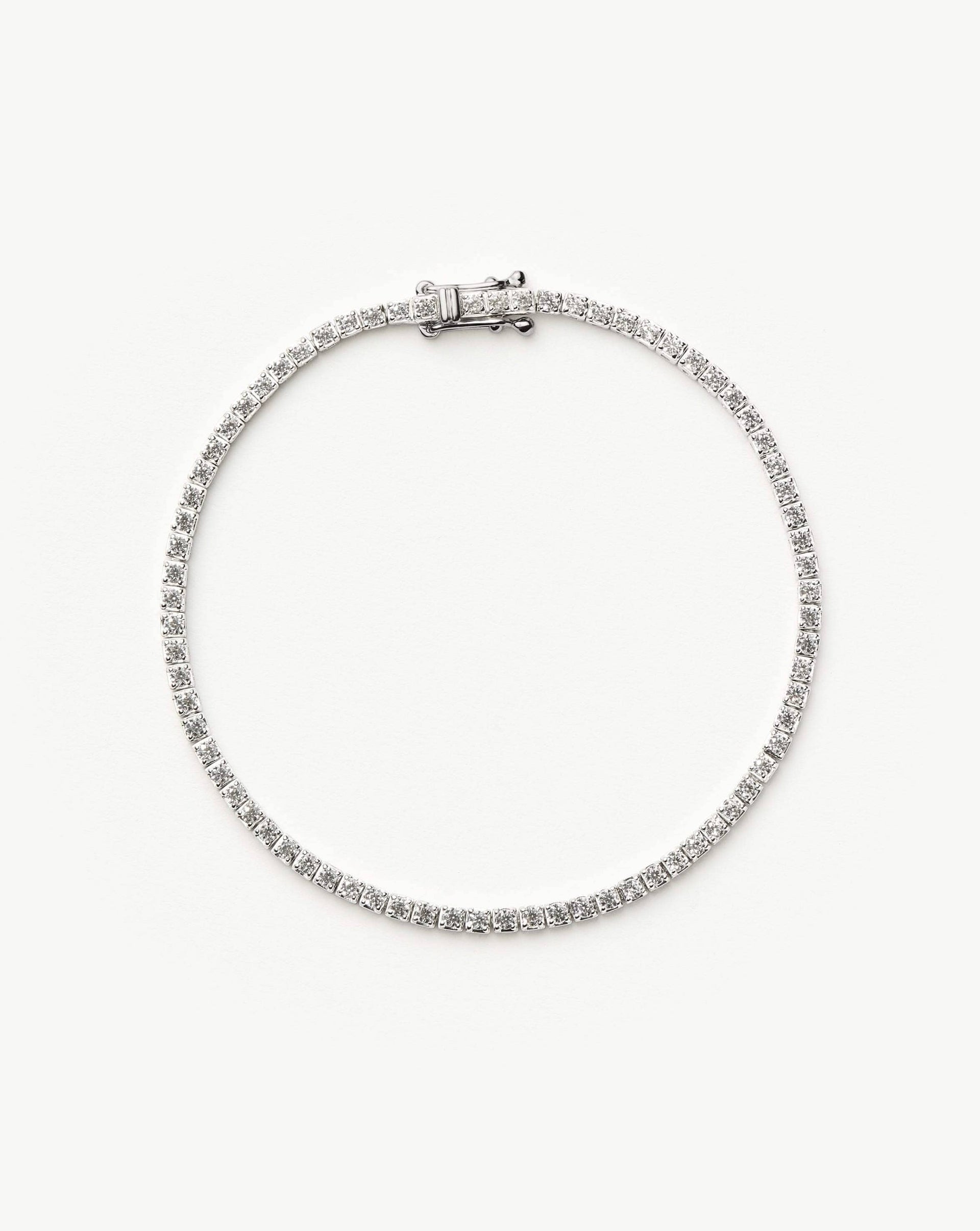 Introducing our first lab grown diamonds, this 14k solid white gold bracelet is skilfully embellished and 100% traceable. Follow your bracelets journey through the passport icon - stacking sustainably never looked so good. Let it shine solo or layer with more forever chains. Each individual piece in our Tennis Collection takes 24 hours to craft by hand.