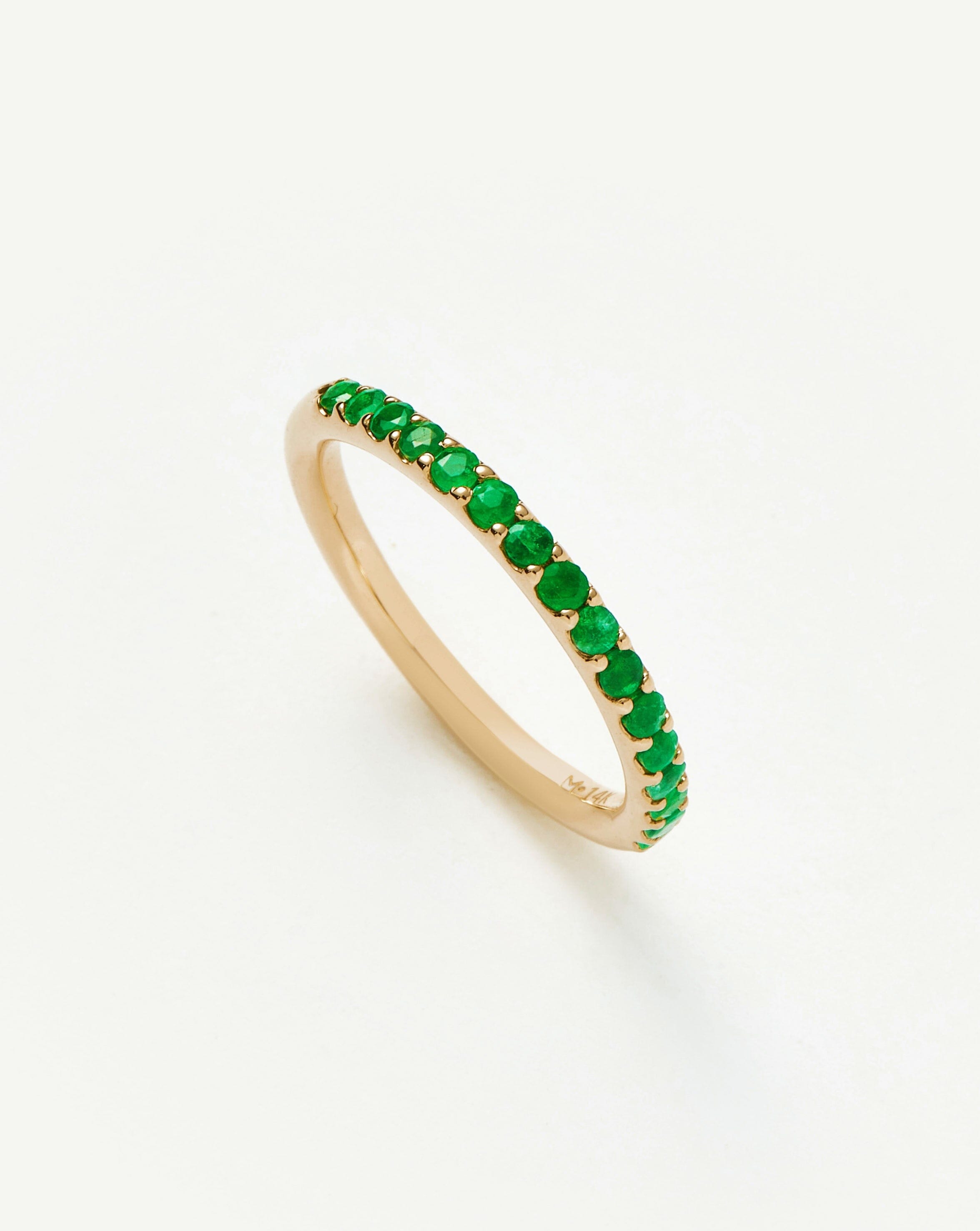 A forever piece, this simple half-eternity ring features our first-ever emeralds. Gift this emerald birthstone or wear solo or pair with other pared-back bands for a refined ring stack. Handcrafted from 100% certified recycled solid gold, and hallmarked for authenticity.