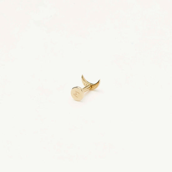 This single celestial-inspired crescent moon-shaped stud earring is an elevated take on our signature studs. Designed with a 6mm labret, this is the perfect everyday stud for healed piercings. Stack with other solid gold styles for an elevated ear stack.