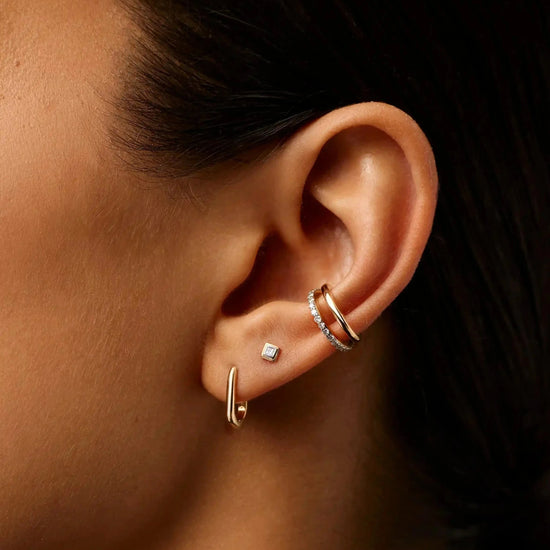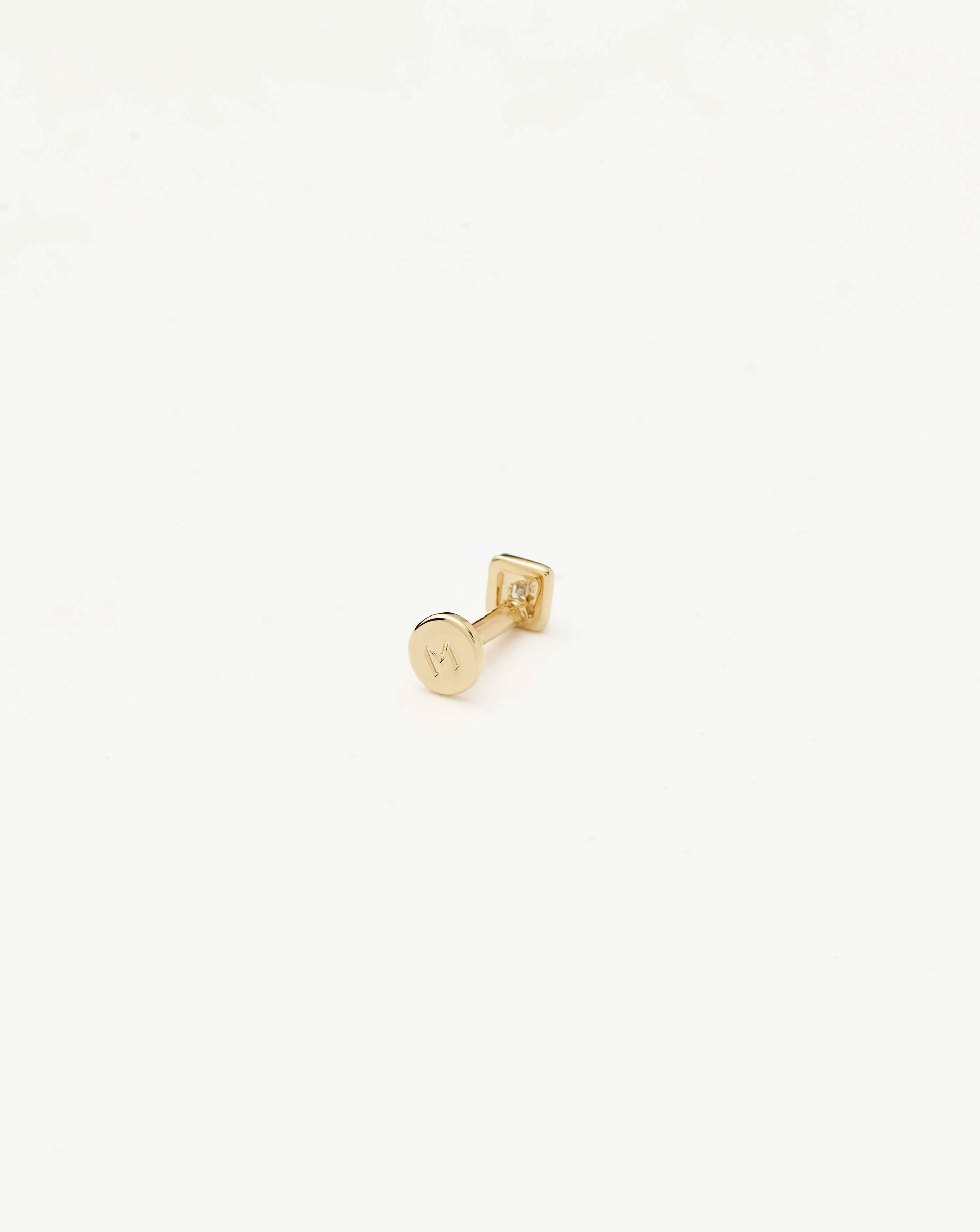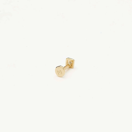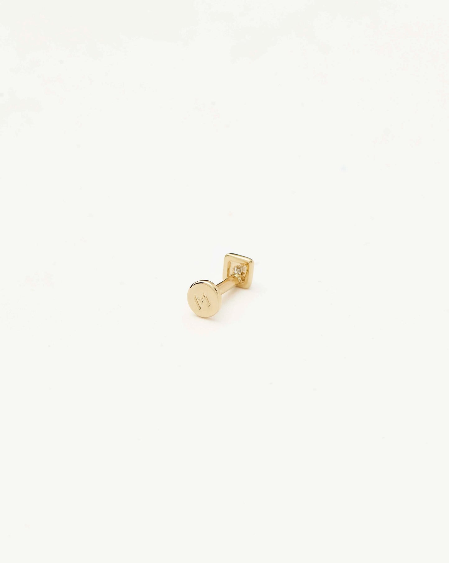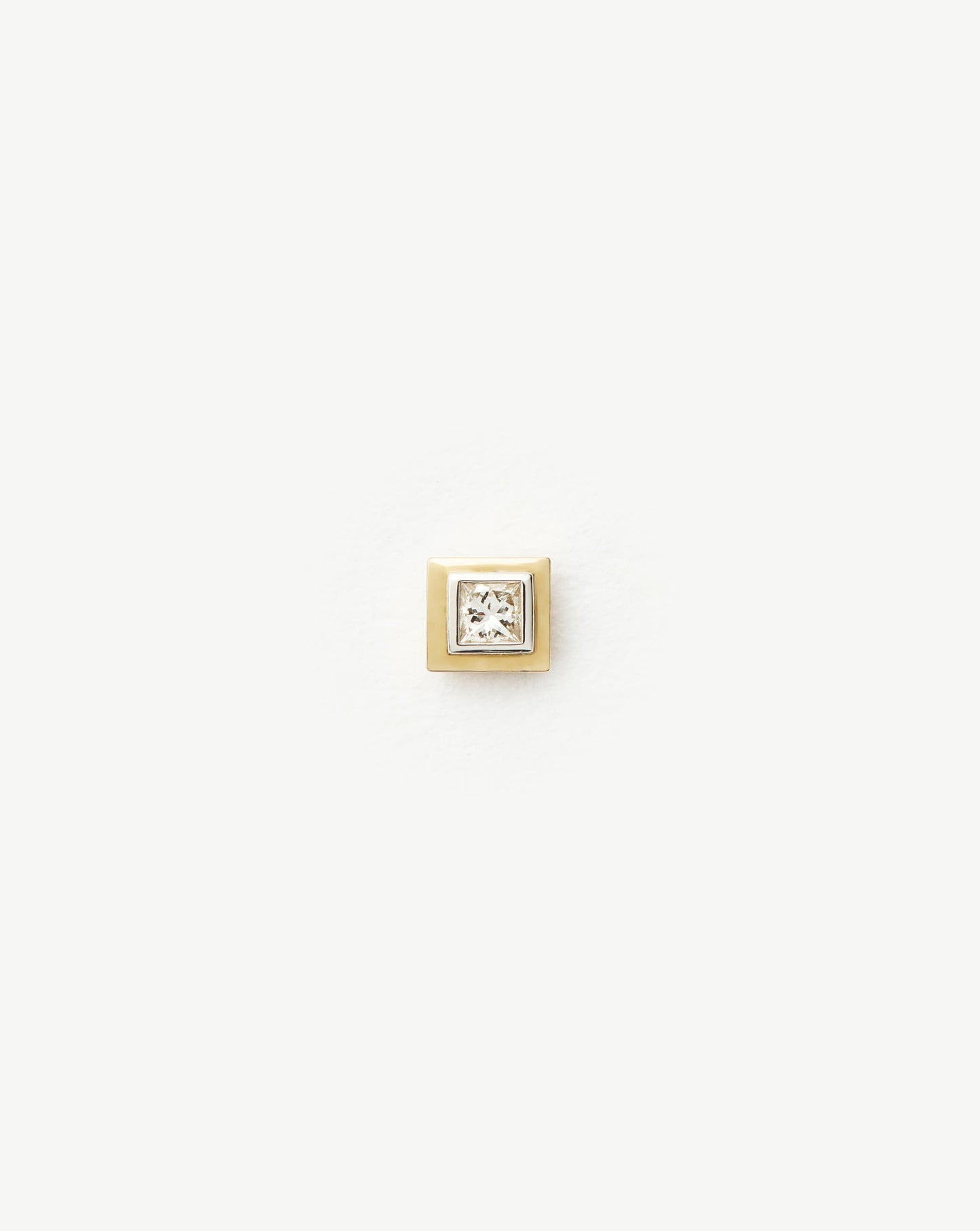 This single square-shaped stud earring features a single square white diamond. Designed with a 6mm labret, this is the perfect everyday stud for healed piercings. Stack with other solid gold styles for an elevated ear stack.