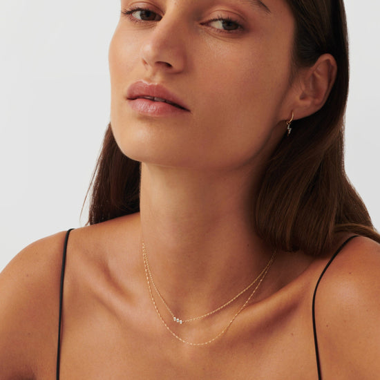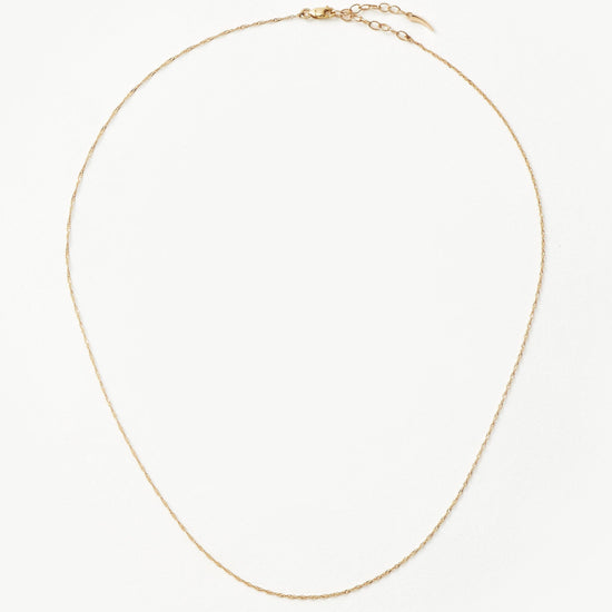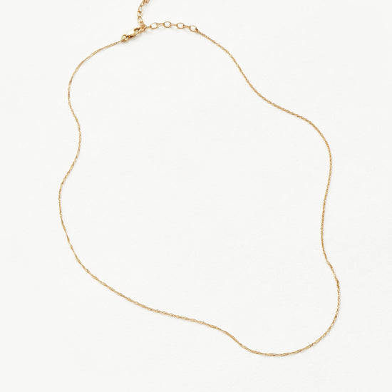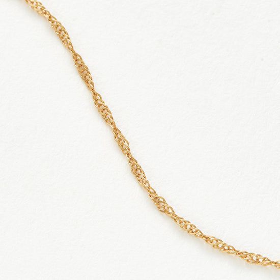 A delicate forever chain necklace with a twist. Wear solo, or style with other fine chains for a more layered look. Handcrafted from 100% certified recycled solid gold, and hallmarked for authenticity.