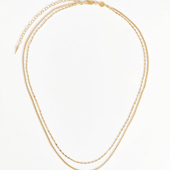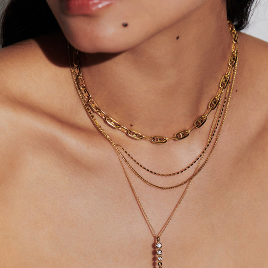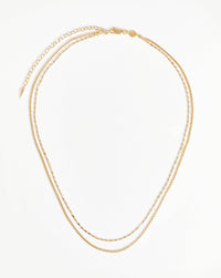 Upgrade your layers with a delicate double chain. Featuring two strands of box-shaped links, this high-shine necklace easily fastens with a claw clasp. Giving the look of two chains in one, pair with a statement necklace to add contrast.