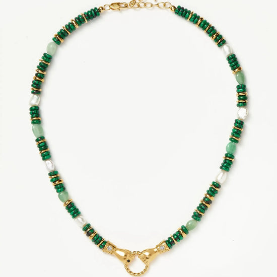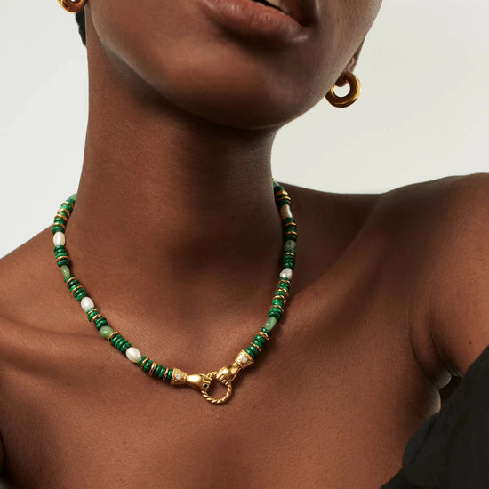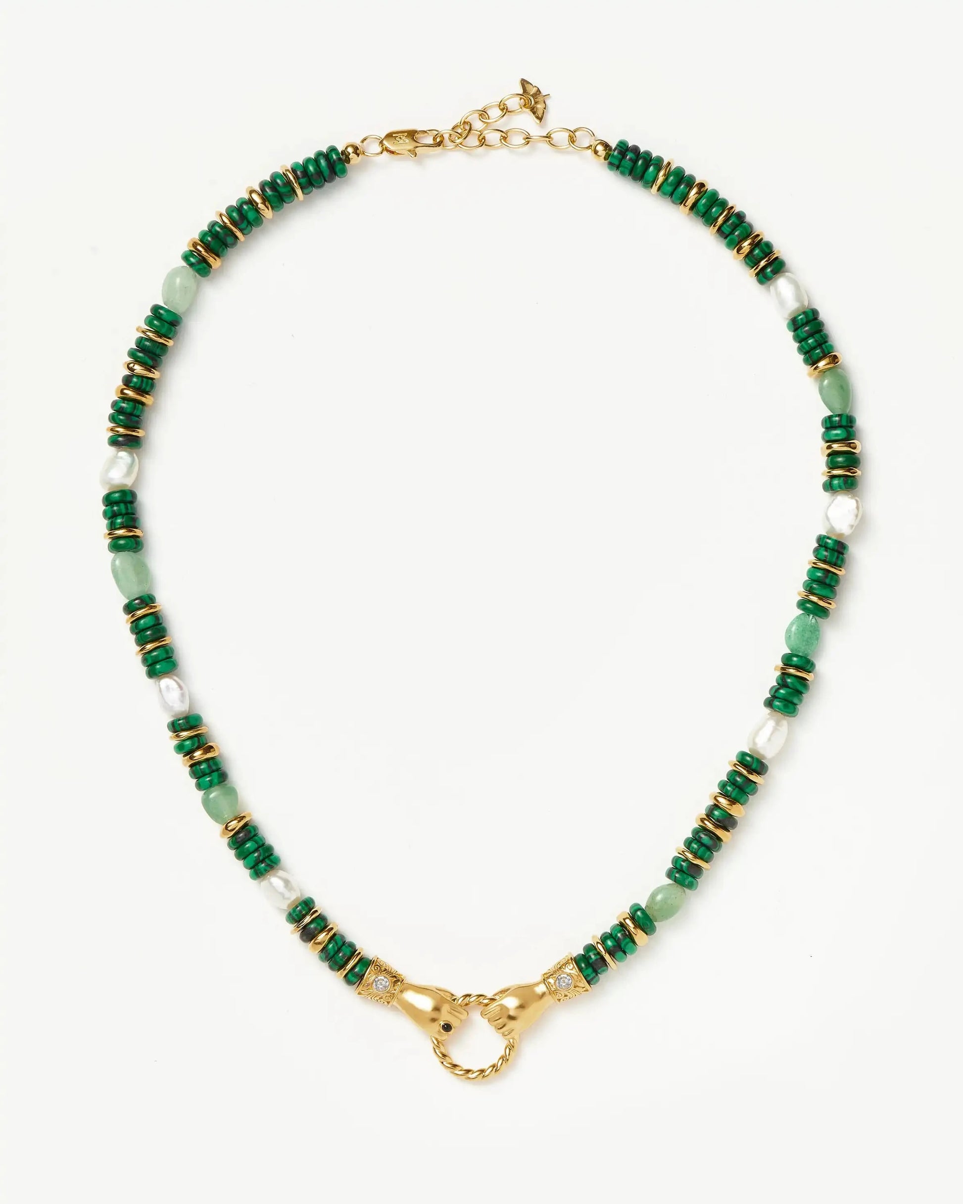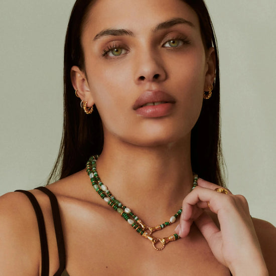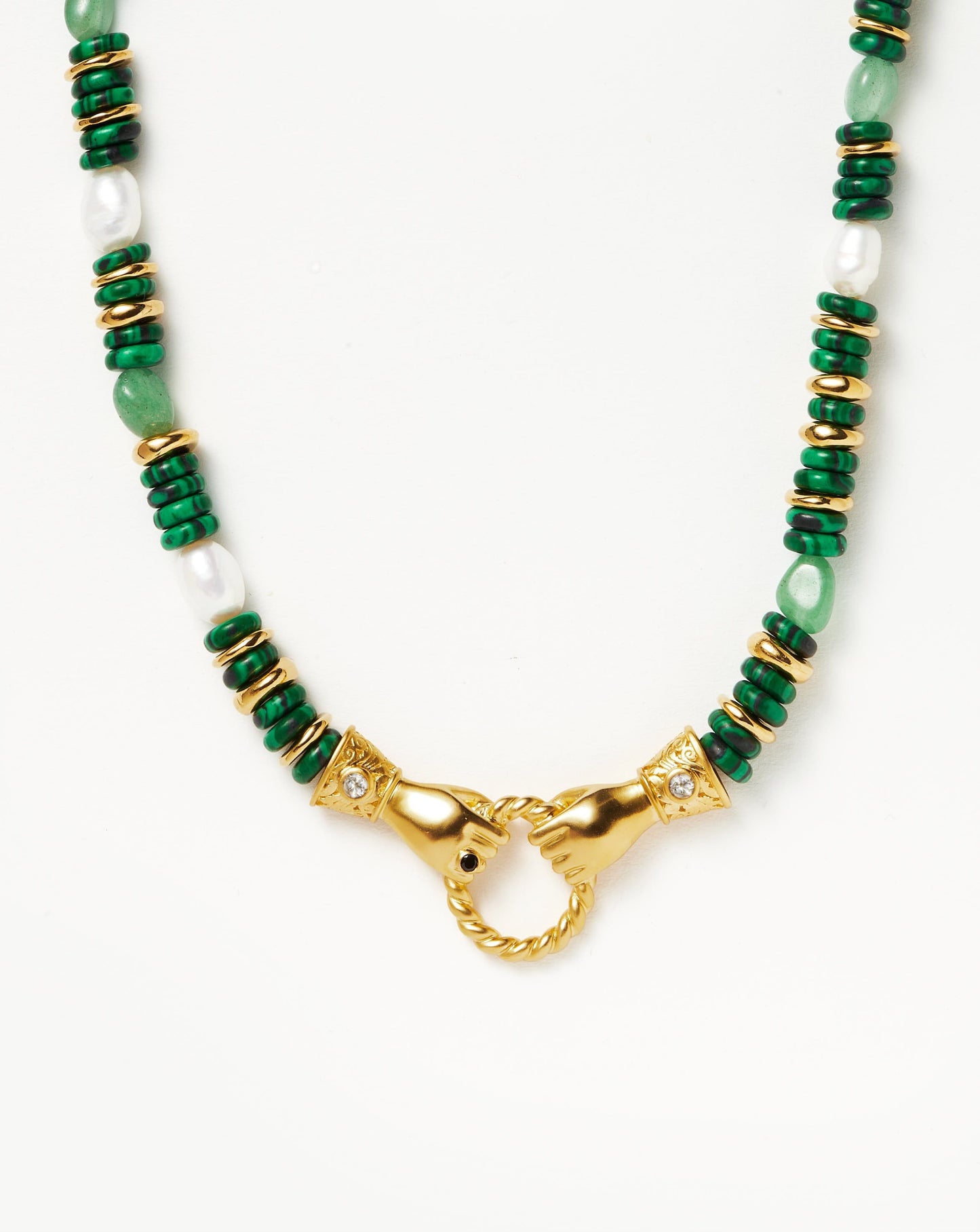 Harris Reed x Missoma’s sell out ‘In Good Hands’ design is reimagined with new colorful gems. The bigger and bolder multi-beaded necklace features a kaleidoscope of mood-boosting semi-precious stones, offset with organic-inspired gold beads.
