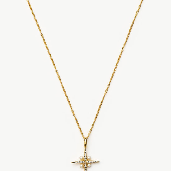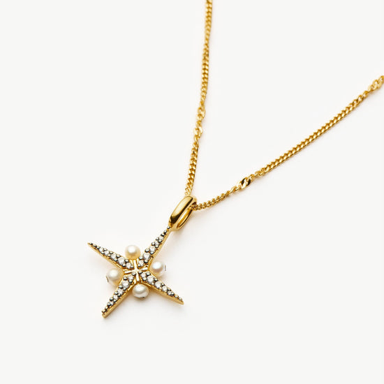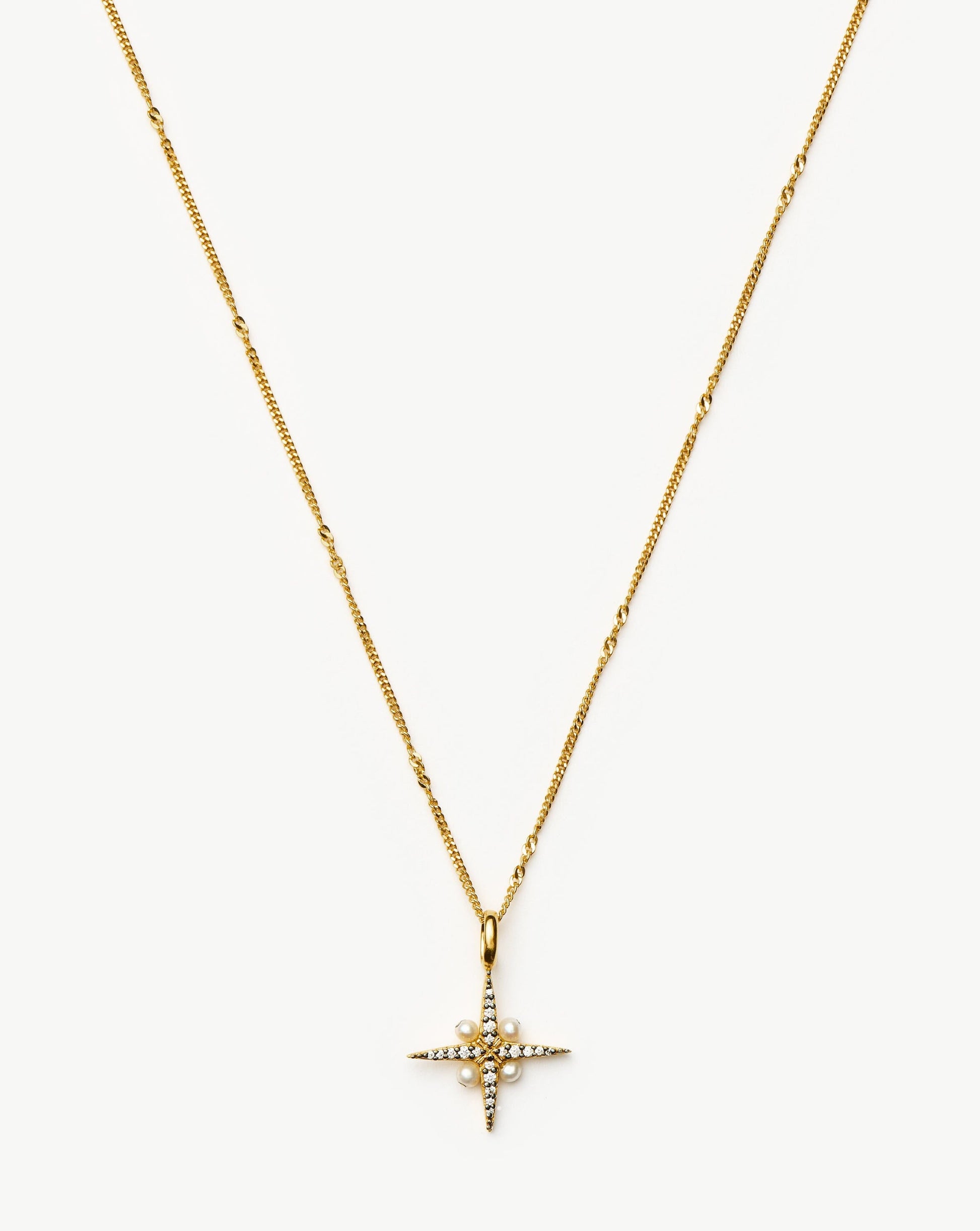 This celestial pendant shines with graduated cubic zirconia pavé on black rhodium, surrounded by four pearl cabochons. The detachable pendant is paired with a twisted chain or can be added to any of your favorite delicate necklaces. Finished with the collection's butterfly end charm, a symbol of duality. Layer for less when bought as a set Harris Reed North Star Pearl Necklace Set.