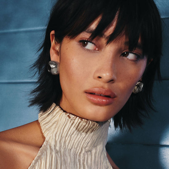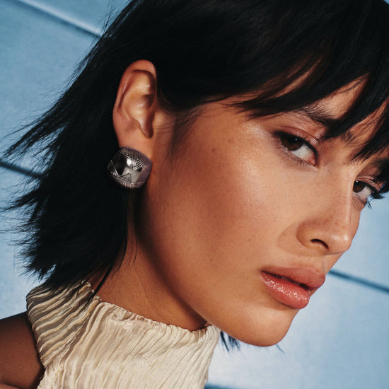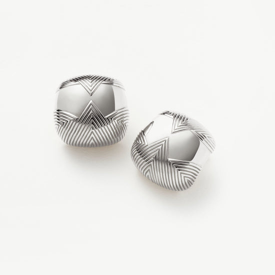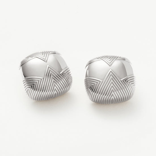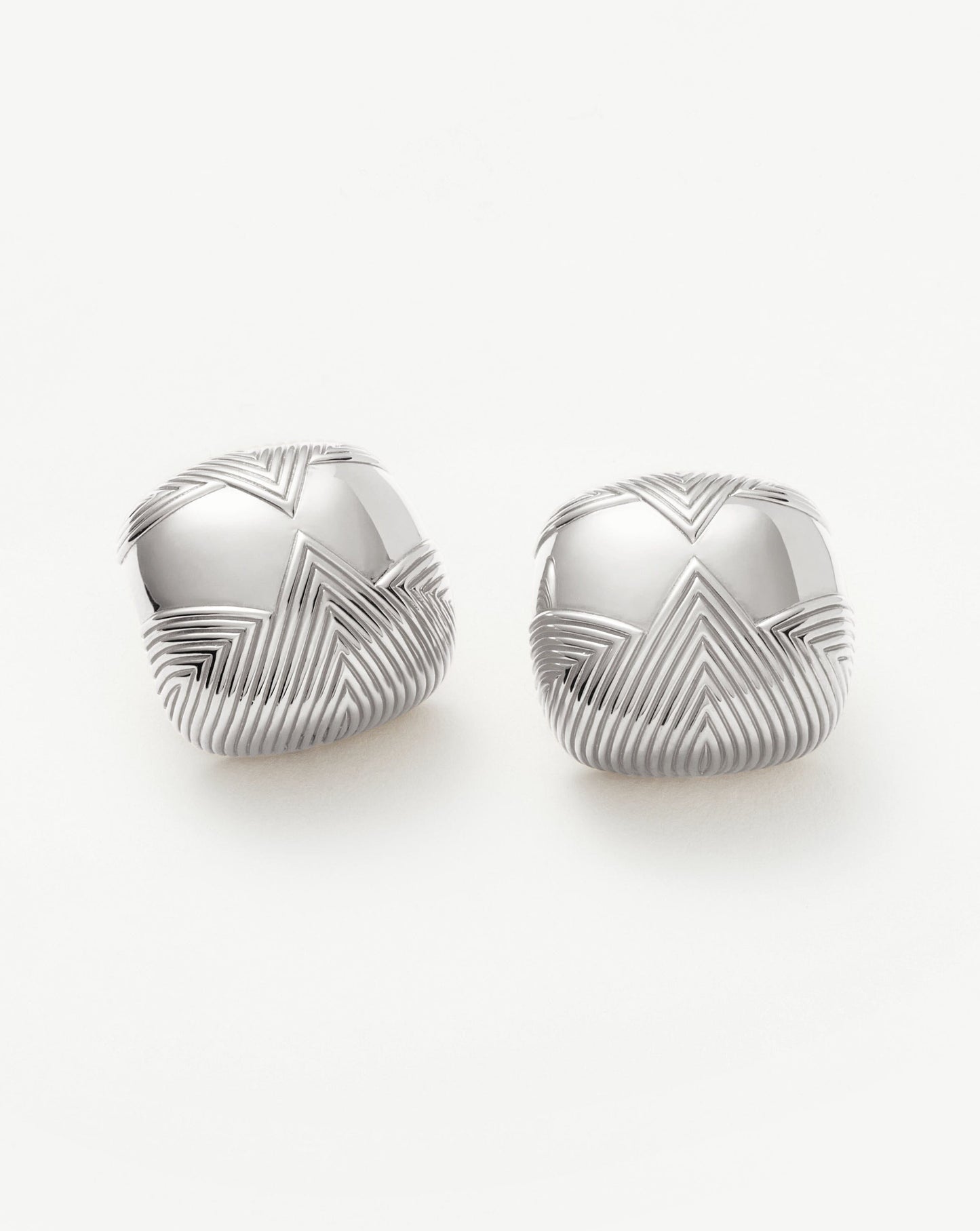 Go oversized with these large and lightweight statement domed silver studs, featuring geometric ridge detailing. Let them take centre stage or style with studs for an instant ear stack.