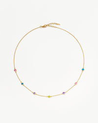 Bring out the color. Inspired by our original Hot Rox archive collection, this charm choker features evenly spaced multi-colored gemstones – pink quartz, turquoise magnesite, purple amethyst quartz, green peridot quartz and dark purple iolite. Layer with chunky chains and beaded necklaces for maximalist styling.
