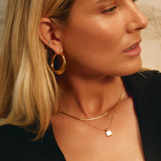 Did someone say Lucy squared? Upgrade your layers with the ultimate set from our collaboration with Lucy Williams. Teamed together, the Square Mother of Pearl Necklace and Square Snake Chain Necklace create an iconic duo you'll never want to take off. Save more when buying them together.