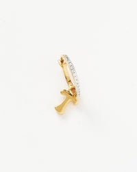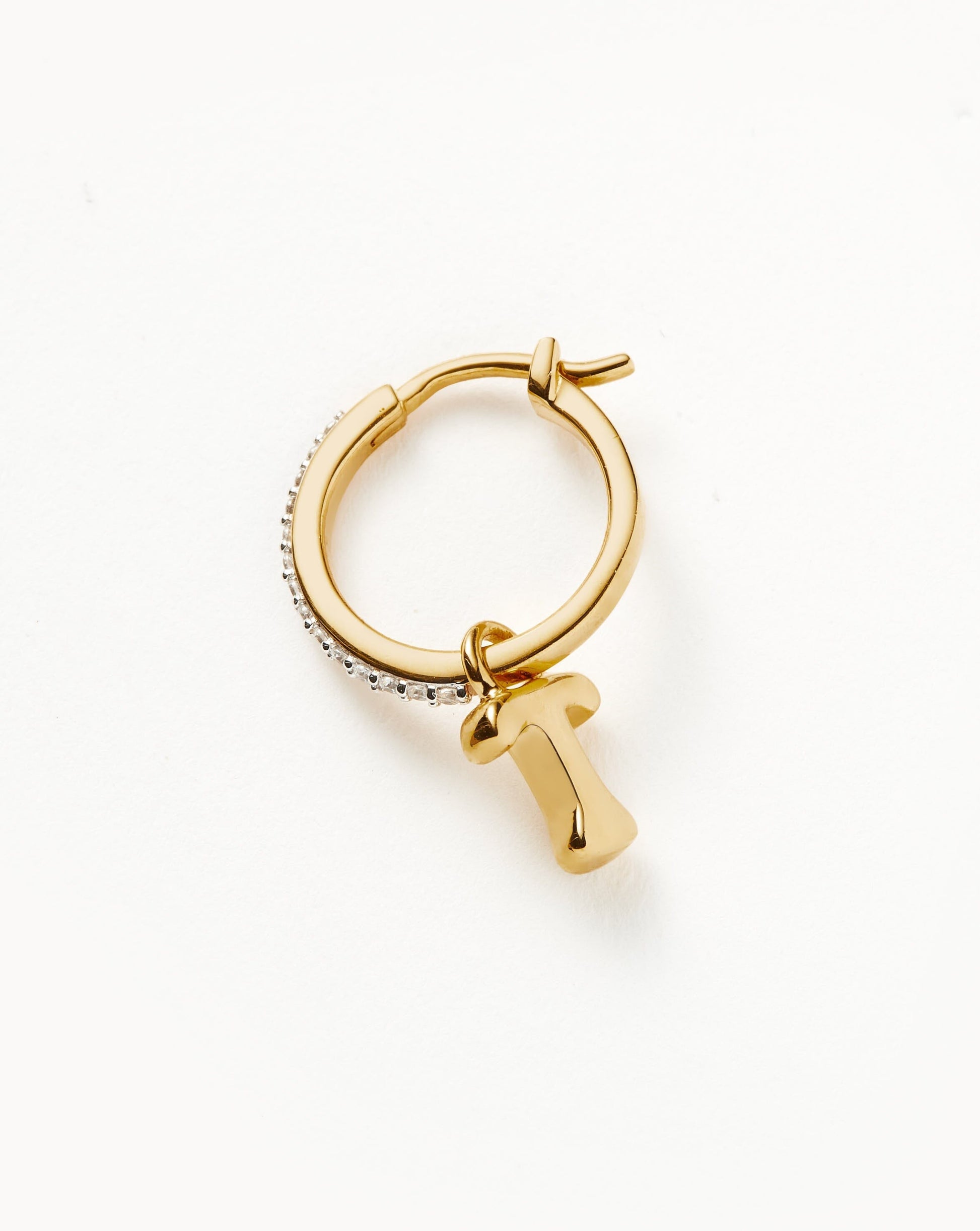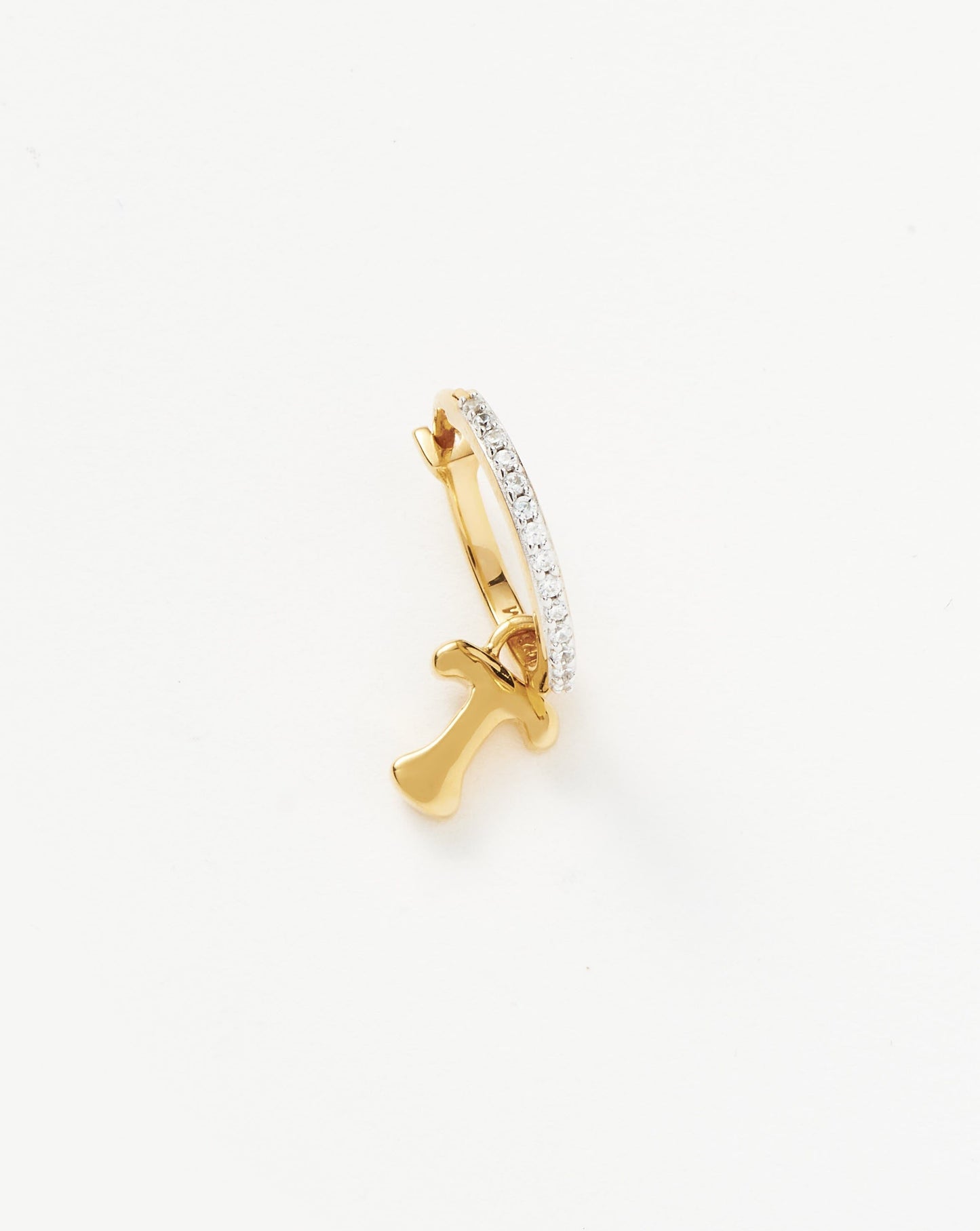 Spell it out, this one's for you. Add a personal touch to your ear stack with this alphabet drop charm in a 70s-inspired font, paired with a pavé mini hoop earring. Choose your letter, or make it the ultimate personalized gift. Remove the charms to wear the hoops solo.