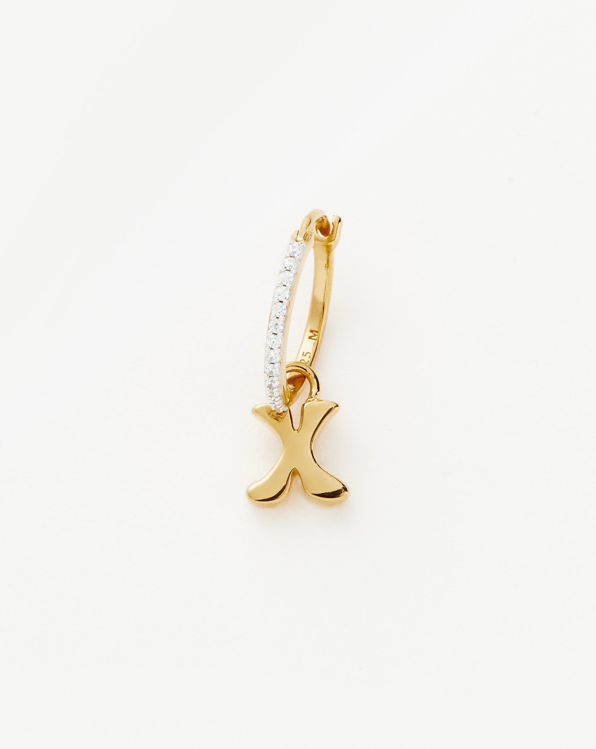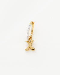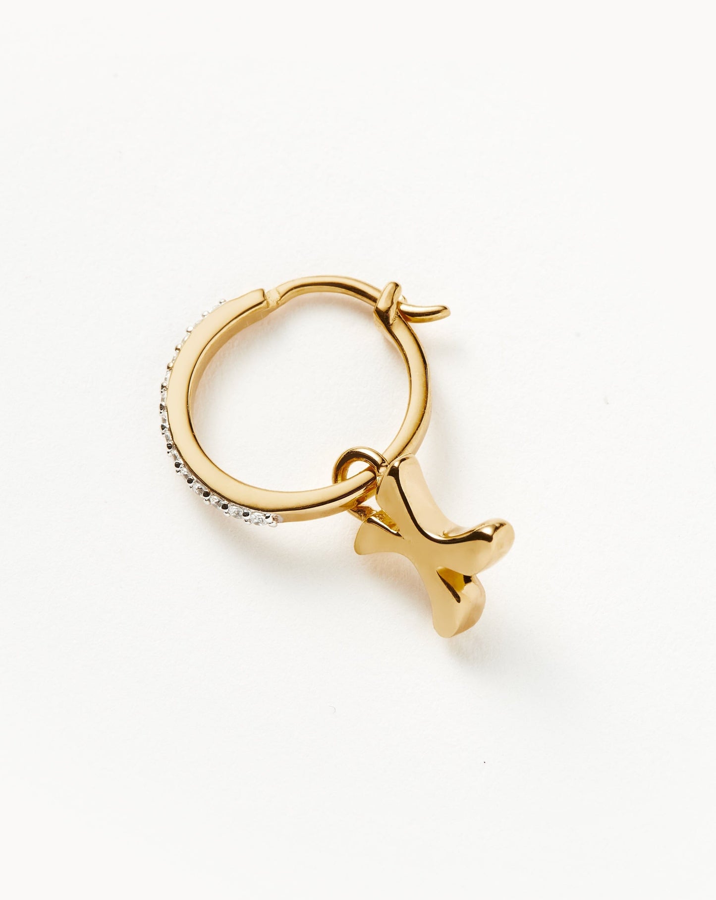 Spell it out, this one's for you. Add a personal touch to your ear stack with this alphabet drop charm in a 70s-inspired font, paired with a pavé mini hoop earring. Choose your letter, or make it the ultimate personalized gift. Remove the charms to wear the hoops solo.