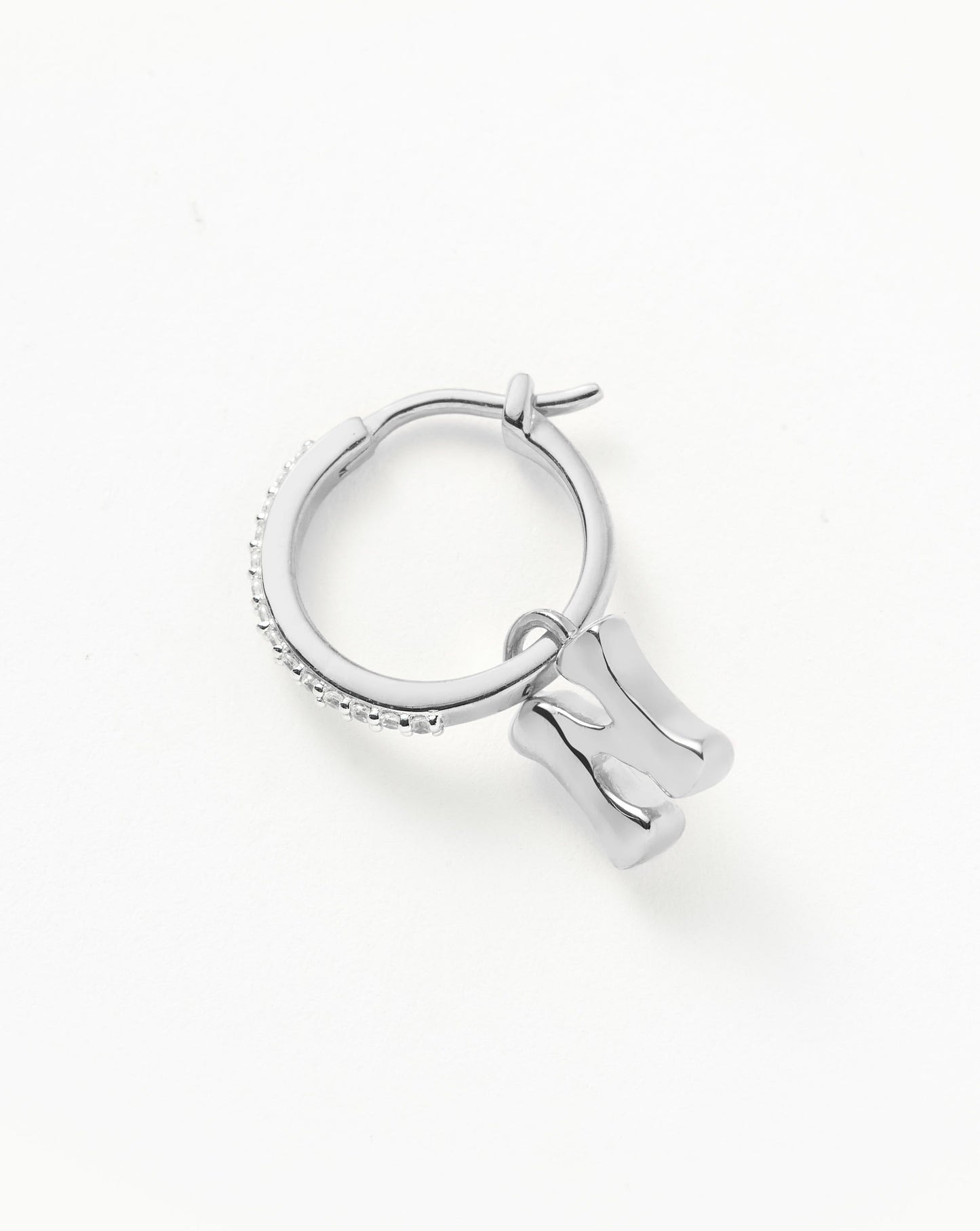 Spell it out, this one's for you. The perfect way to add a personal touch to your ear stack, the retro-inspired alphabet drop pendant is paired with a pavé mini hoop earring. Keep it for yourself or give as the ultimate personalized gift. Remove the charms to wear the hoops solo.