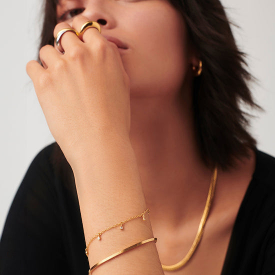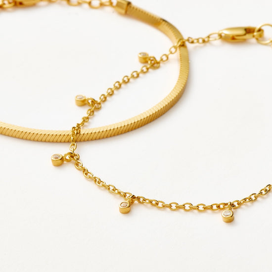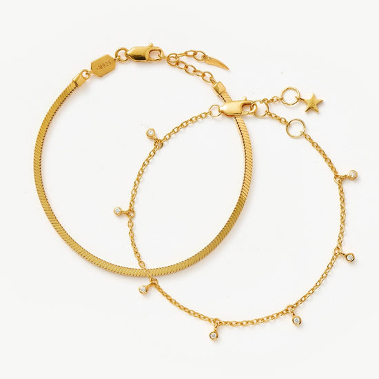 Upgrade your arm stack with a standout set. Teamed together, the Interstellar Drop Bracelet and Lucy Williams Square Snake Chain Bracelet make a unique impact. Save more when buying them together.
