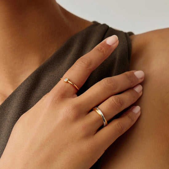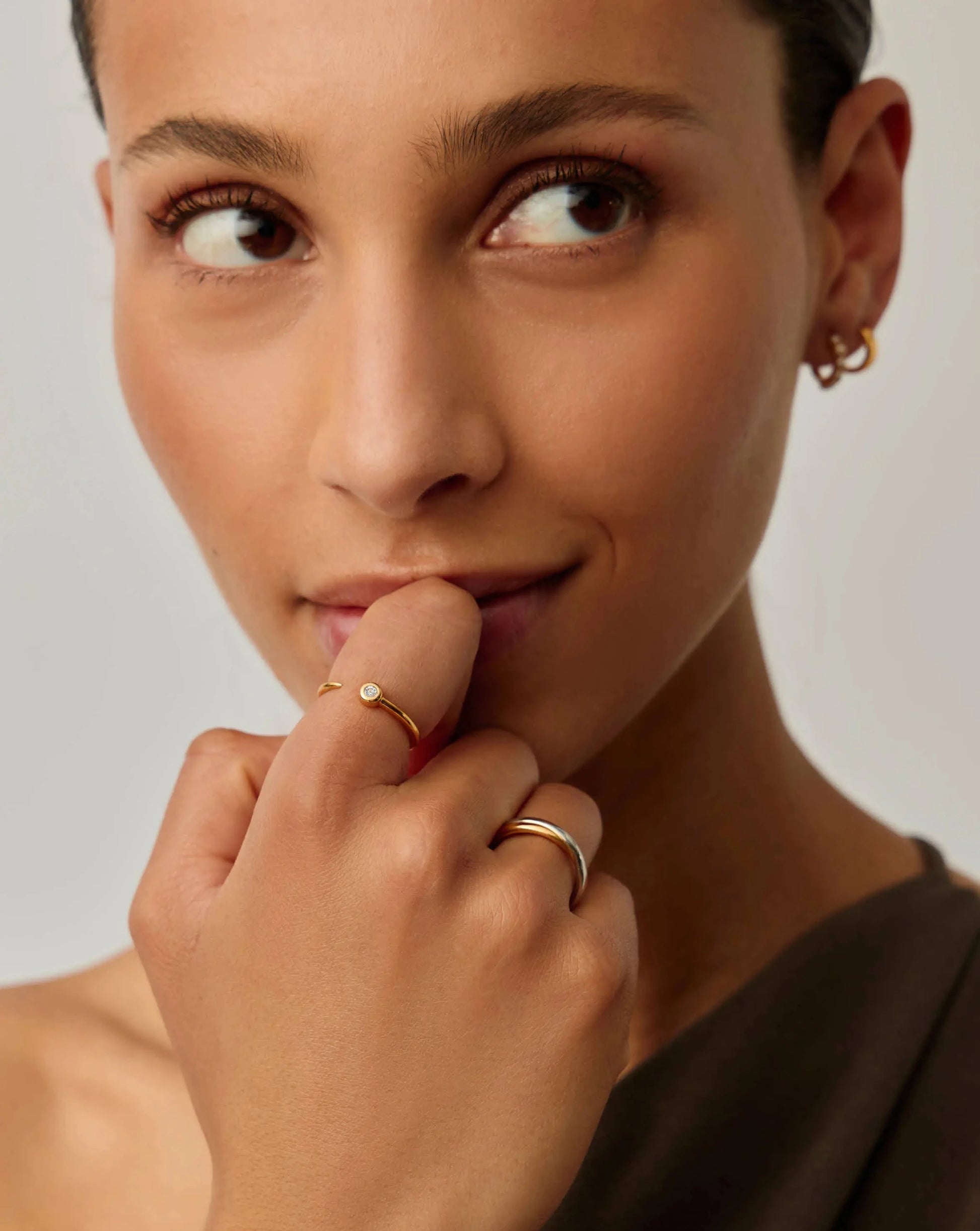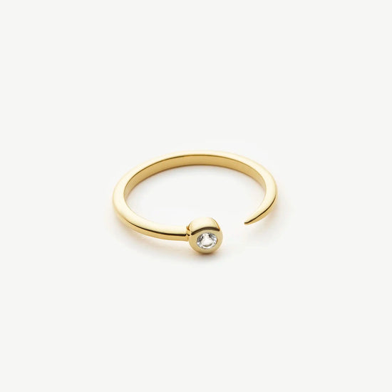 Inspired by constellations of planets and stars found in the cosmos, this collection celebrates our fascination with interstellar connections. The Silver Interstellar Ring has an open design, completed with a sparkling pave crystal on one end, while the other tapers to a point.