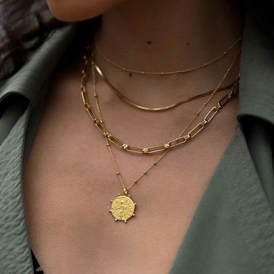 Upgrade your layers with this Lucy Williams x Missoma signature piece. Set on a delicate bobble chain, this versatile necklace features a beaded coin inspired by ancient Rome. The ultimate way to add length to your look.